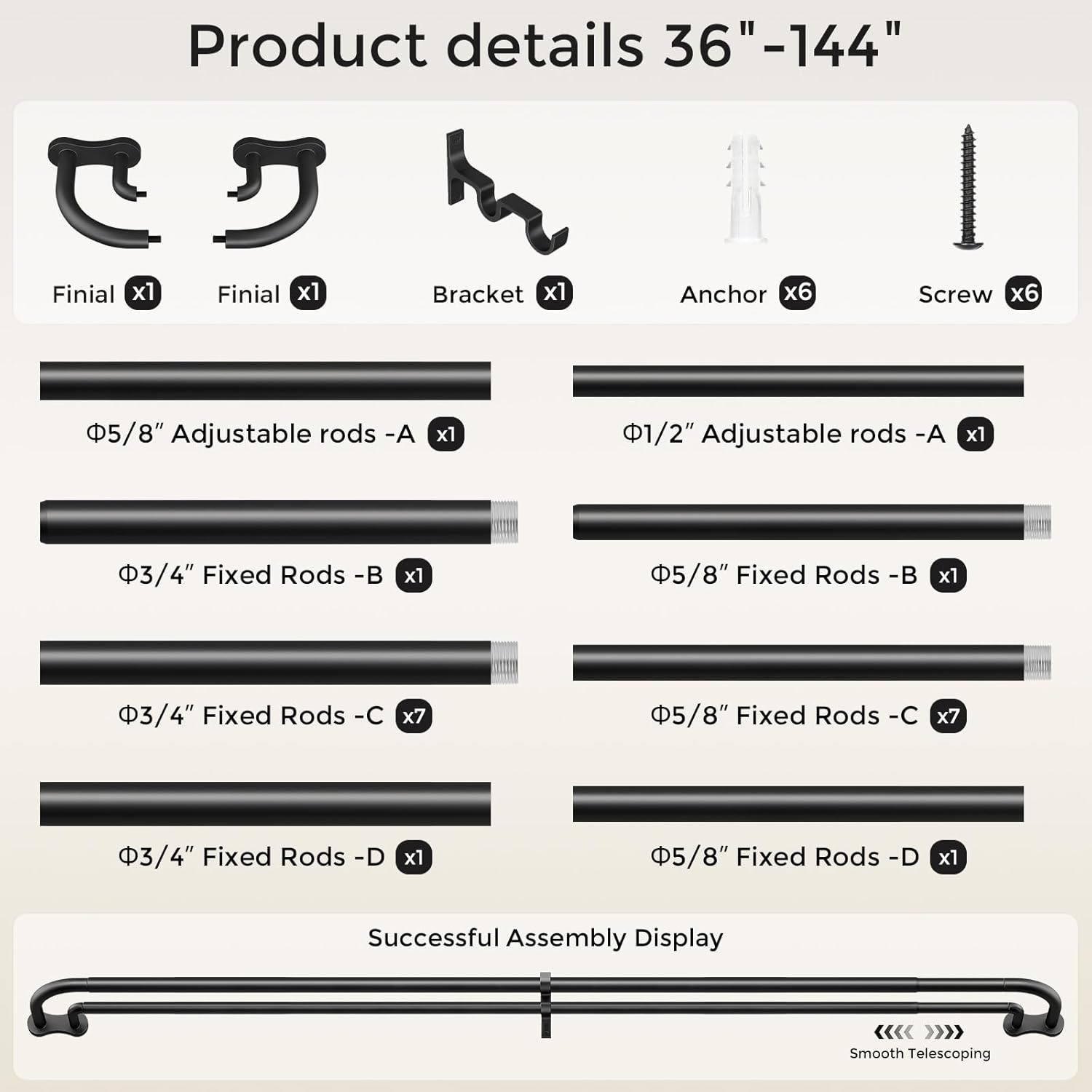 | Included Components | Anchors×7, Brackets×3, Finials×2, Rodsx 20, Srews×7 |