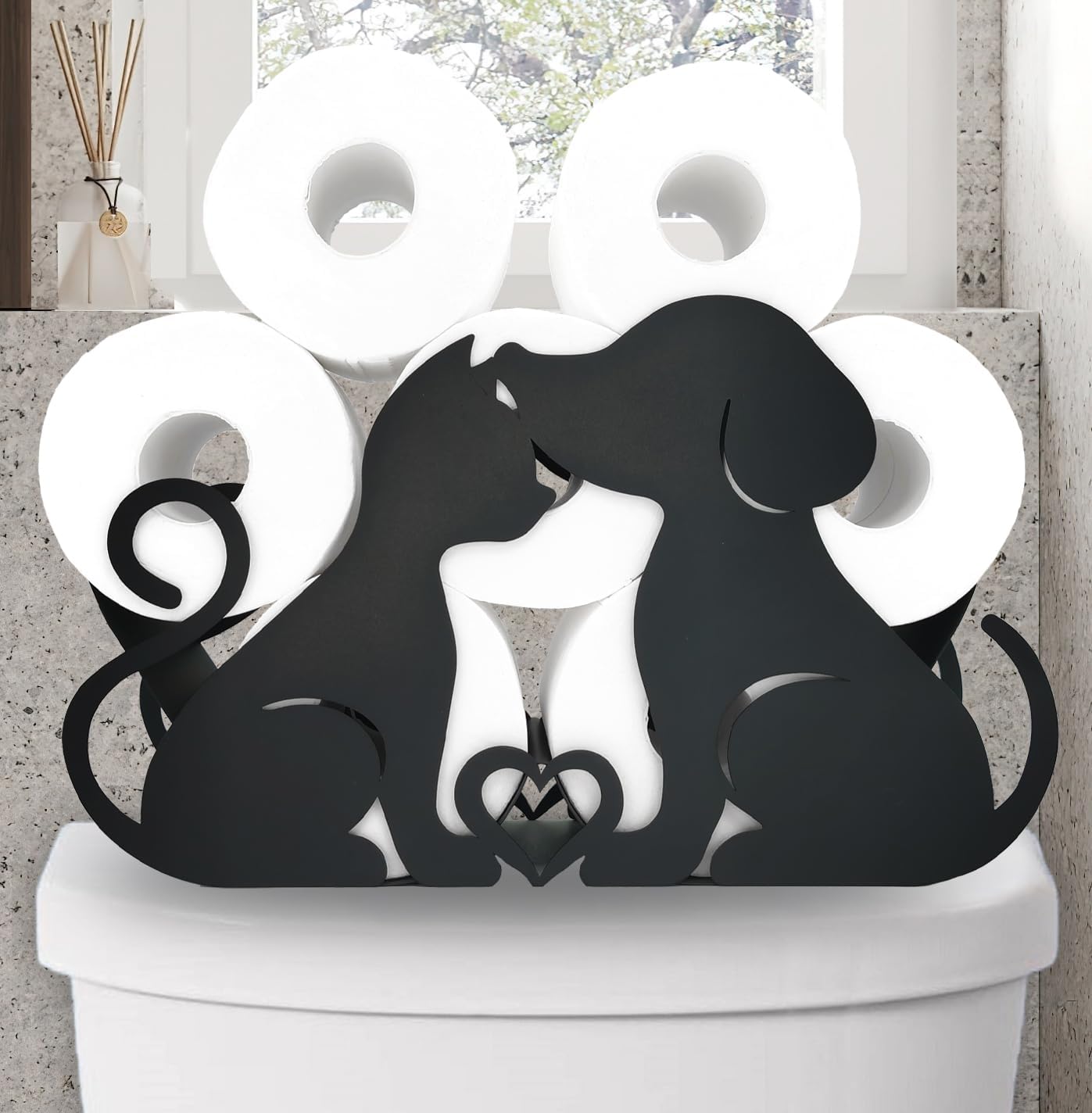 This fun and functional metal storage paper holder is made from high quality metal and powder coated to resist corrosion and withstand the humidity in the bathroom