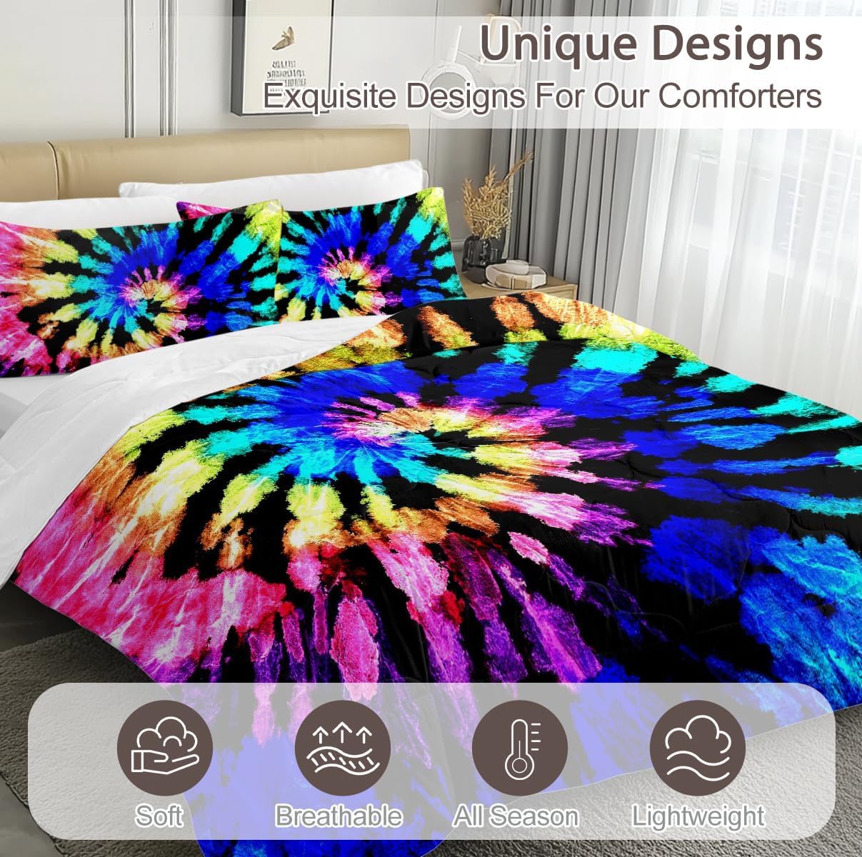 The perfect bedding shouldn’t just give you a better night sleep, it should also match your home décor seamlessly. The perfect combination of functionality and comfort, with striking unique designs, our comforter sets truly are the bedding of your dreams! Made from the highest quality polyester and 3D printed with the latest technology, the comforter and pillow shams set will completely transform your bedroom, and help you sleep as a baby! What makes our bedding so unique? We strived to create the most comfortable bedding possible. Using high-quality microfiber polyester, the comforter and shams are ultra-soft and comfortable. The comforter is also incredibly breathable and lightweight so you get a truly remarkable sleeping experience. Some of the amazing features of our comforter set: ⭐Durability, the comforter and shams are rip and tear proof, made with reinforced stitching to provide extended durability; ⭐Unique designs, we offer a wide selection of 3D printed designs, featuring vivid colors that are guaranteed not to fade; ⭐Reversible, the comforter is reversible so you can easily change your room décor; ⭐Easy to care for, the bedding is machine-washable and wrinkle-resistant; ⭐Range of sizes: -Twin (66x90’’) – 2 shams (20x26’’) -Queen-size (90x90’’) – 2 shams (20x36’’) -King-size (104x90’’) – 2 shams (20x36’’) Completely transform your bedroom and sleeping experience!