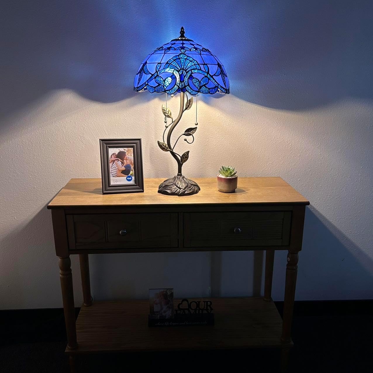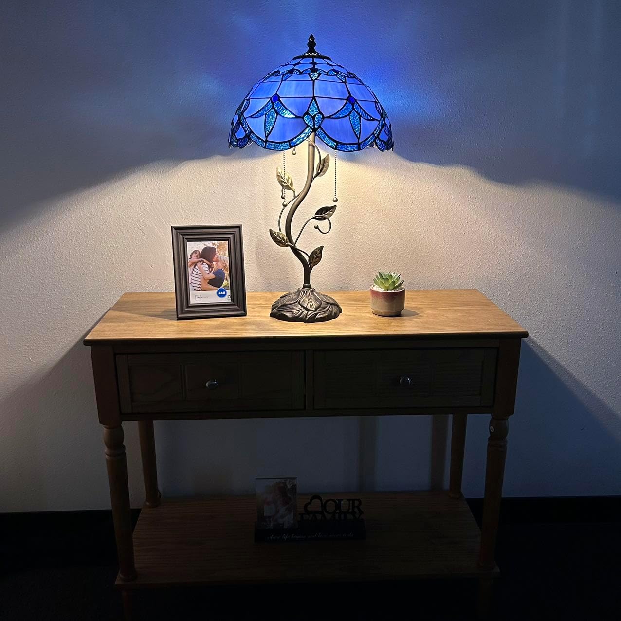 Metal Resin Base with bronze finish. UL Listed .Each piece of stained glass is hand-soldered into place using the traditional copper foil technique.