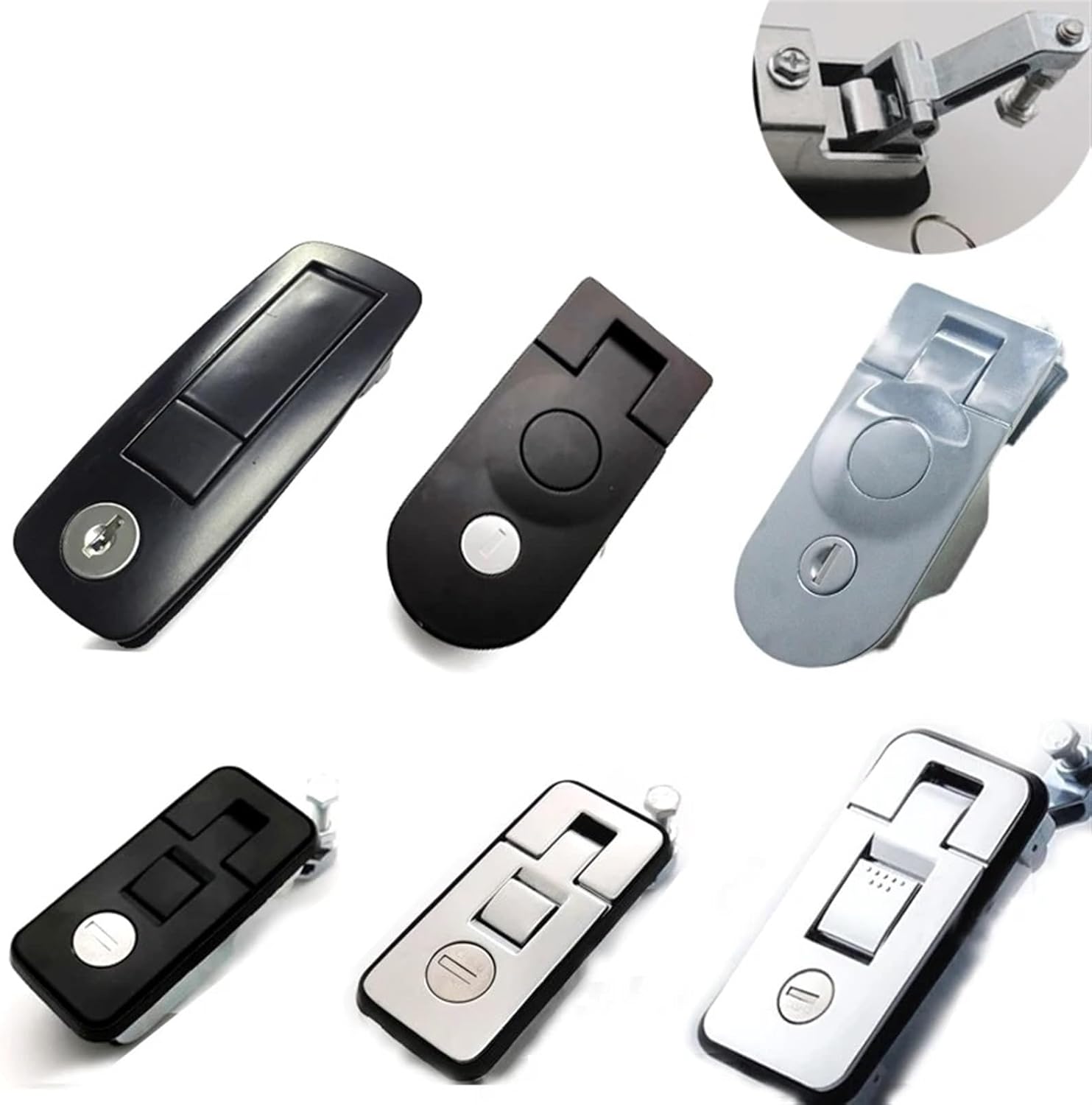 LatchName:Bounce Handle Cabinet Lock For Electronical Storage Box GYM Locker Bus Truck Trunk MS207 G 1PcsItem:MMS207 Lock Type:Flat KeyKey Type:Flat KeyMaterial:Zinc AlloyFinished: Black Key Combination: Same Key Gross Weight:320g/pcsPackage:PP BagAccessories:Lock*1pcs, Key*2pcs