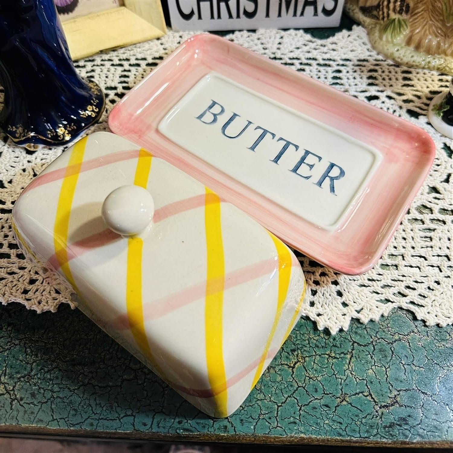 Simple and practical butter container for home, restaurantProduct Name:Butter dishMaterial: ceramicSize: 21.5*12.5*10.5cm/8.46*4.92*4.13inchPacking list: butter dish*1Notes:1.Please confirm the size and color before purchase.2.This product has no other items except the butter dish in the photo.3.Manual size measurement. There may be a slight difference, which is normal. Please refer to the actual size. Thank you very much.4.Due to different light and screen, the color of the product may be slightly different from the picture. Please understand.This butter pan is perfect for everyday use as its durable material is very easy to clean.