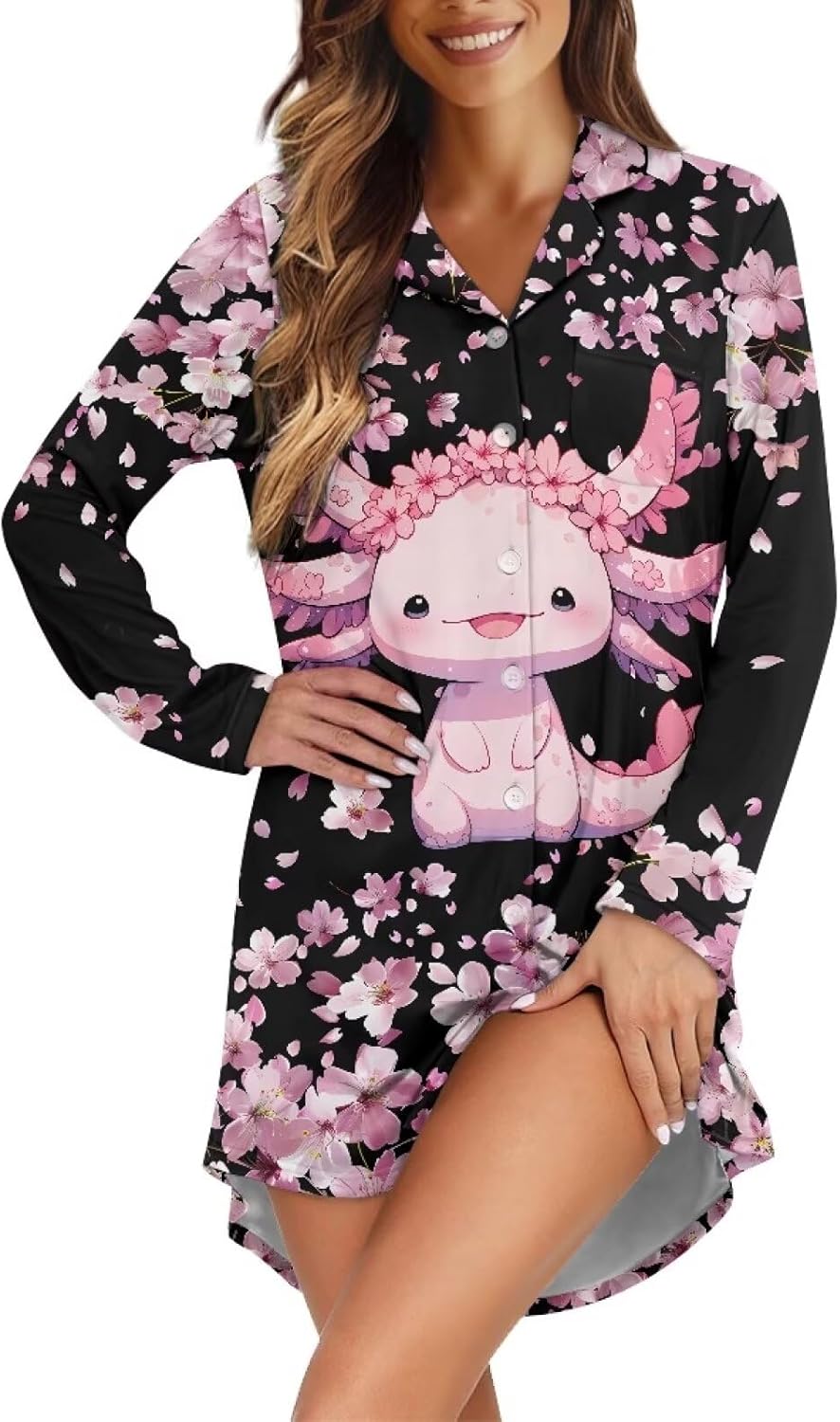 Spowatriy Women's Long Sleeve Button Nightdress : -Womens casual nightgown,v neck boyfriend nightshirt,skin-friendly,not easy to fade and shrink.Soft and comfortable, lightweight and breathable. -Long sleeve,button pajama dress sleepshirt for women,lapel v neck,classic design loungewear with breast pocket.Everyday Style,suit for most body curves and all seasons. Also can be nursing nightgowns/maternity nightgowns. -Various eye catching prints patterns for you to choose, which will never go out of style.It is a must-have loose full button nightgown for your wardrobe!Make you look more elegant and charming. Size :5 sizes for you to choose:S/M/L/XL/2XL,Please check our size chart and product details carefully before placing an order. Full Button Nightdress Long Sleeve Sleepshirt with Pocket for Women : Suitable for pajama party/ girls day/ honeymoon/ bridal pajamas/ travel/ wedding party/ birthday nightgown/Christmas /New Year/Valentine nightgown/costume party, and daily sleepwear.Easy to put on and take off.Wearing it you will want to start a romantic journey! Welcome to Spowatriy! Choose us and trust us! We have many types of products for you to choose from,If you have any questions about our products, please feel free to contact us. We will spare no effort to solve your problem.