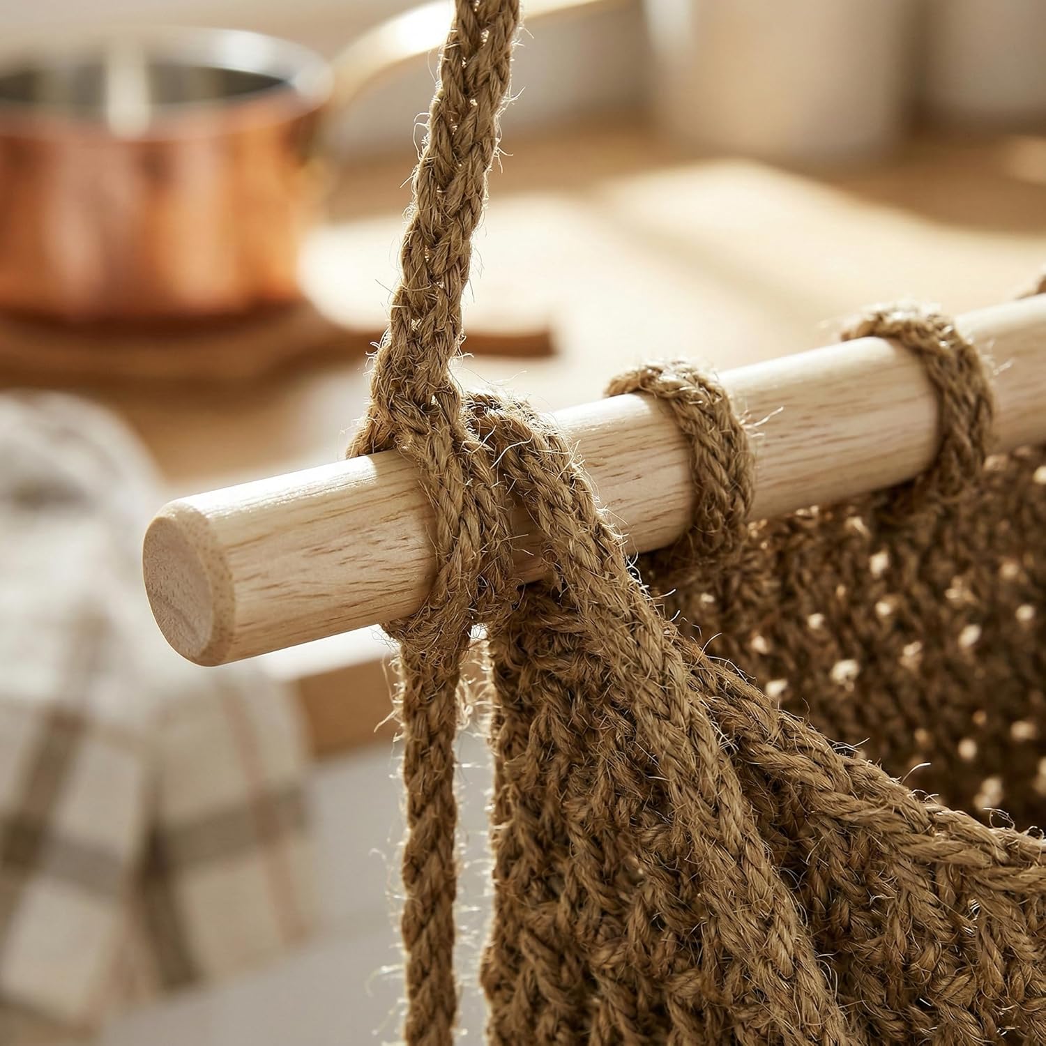 • KEEP PRODUCE FRESH LONGER -- Our open-weave cotton rope design promotes optimal airflow, preventing moisture buildup around your onions, potatoes, and garlic. This breathable macrame organizer helps your fresh harvest ripen naturally without premature spoilage