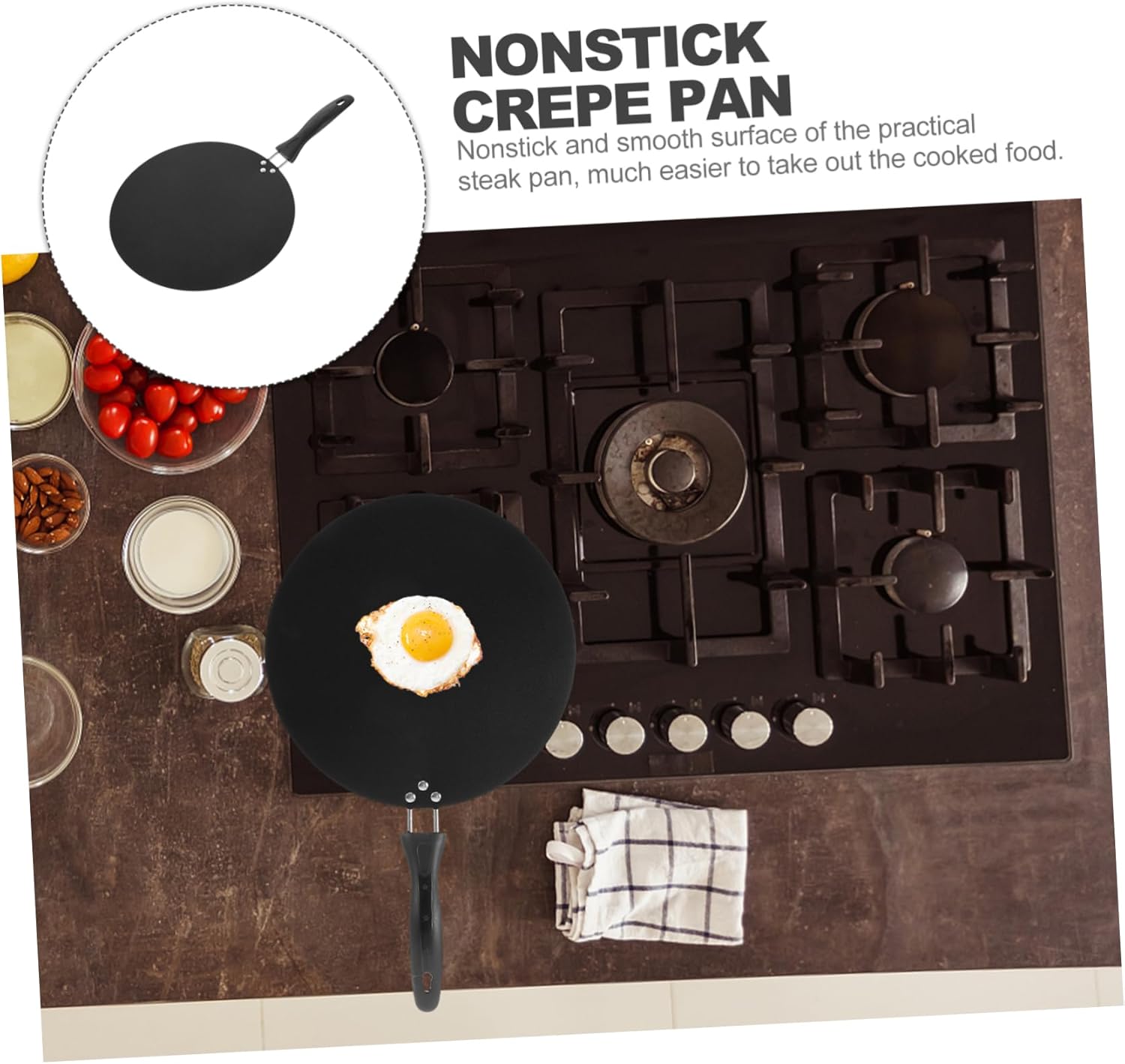 Package List 1 x cooking pan Characteristics -Diameter of the pan: 30cm roti pan. -Material:ABS, iron egg pan -Size:49.00X30.00X6.50cm/19.26X11.79X2.55in nonstick crepe pan -Color:Black crepe maker -Use this pan to cook , crepe, steak, chapati and more food, suitable to be used at home, in the restaurant, etc pan with handle. -Easy to be cleaned, not easy to leave stains on the pan, non stick surface, make food easy to take out chapati pan. -This crepe pan is also an awesome present option for those who cooking, show your concern baking pan. -Made by sturdy materials and workmanship, this pan is practical and can be used for long period of time pan for roti. -Side handles for safe carry this pie pan, save much of your efforts, bringing you convenience crepe maker pan.Goods Descriptionegg pan Nonstick surface makes your food easy to take out, offering you satisfying using experience.pan want to have a practical and delicate pan to make delicious food? Why not take a look at our crepe pan? The pan is made from sturdy material, not easy to deform or break, and can be used for a long term