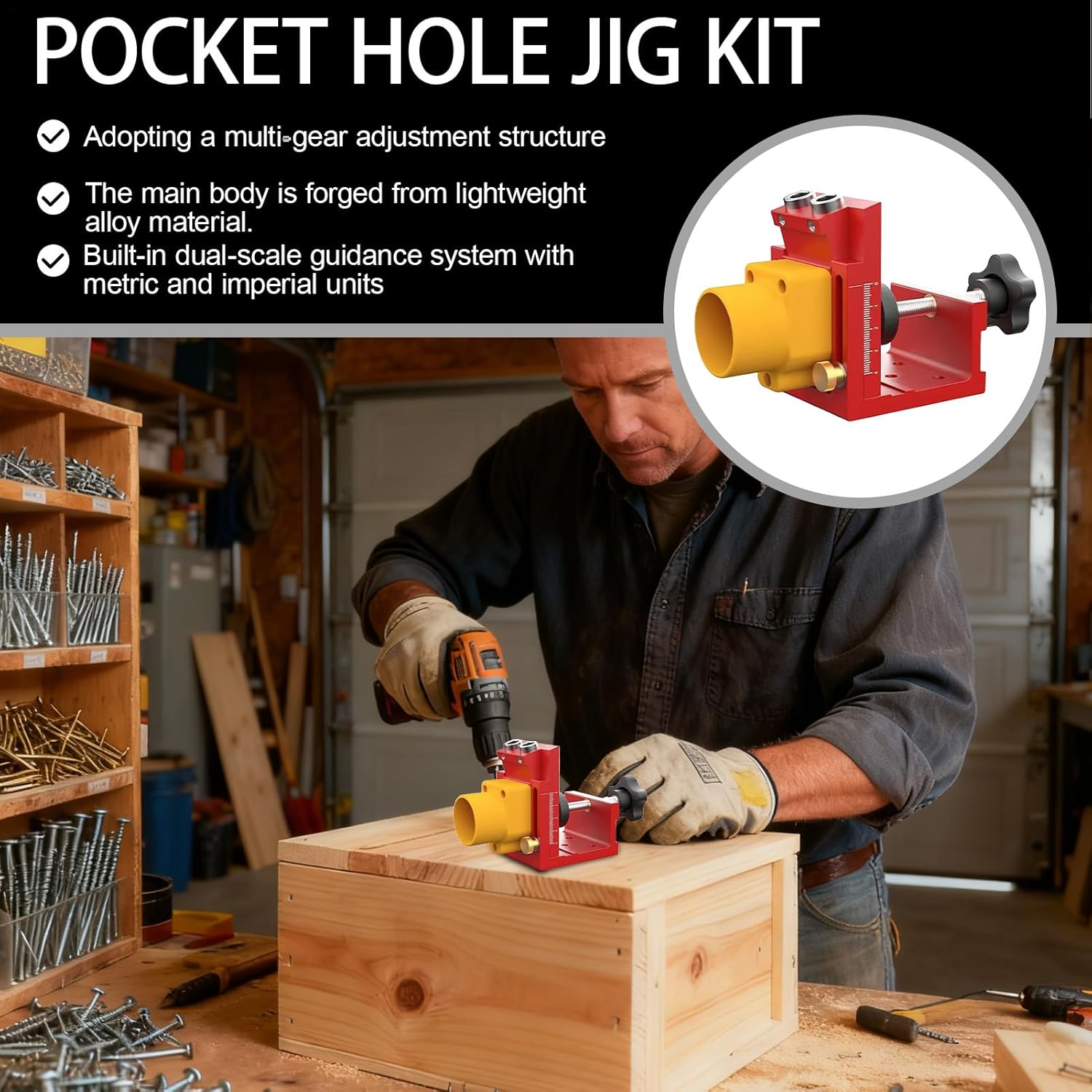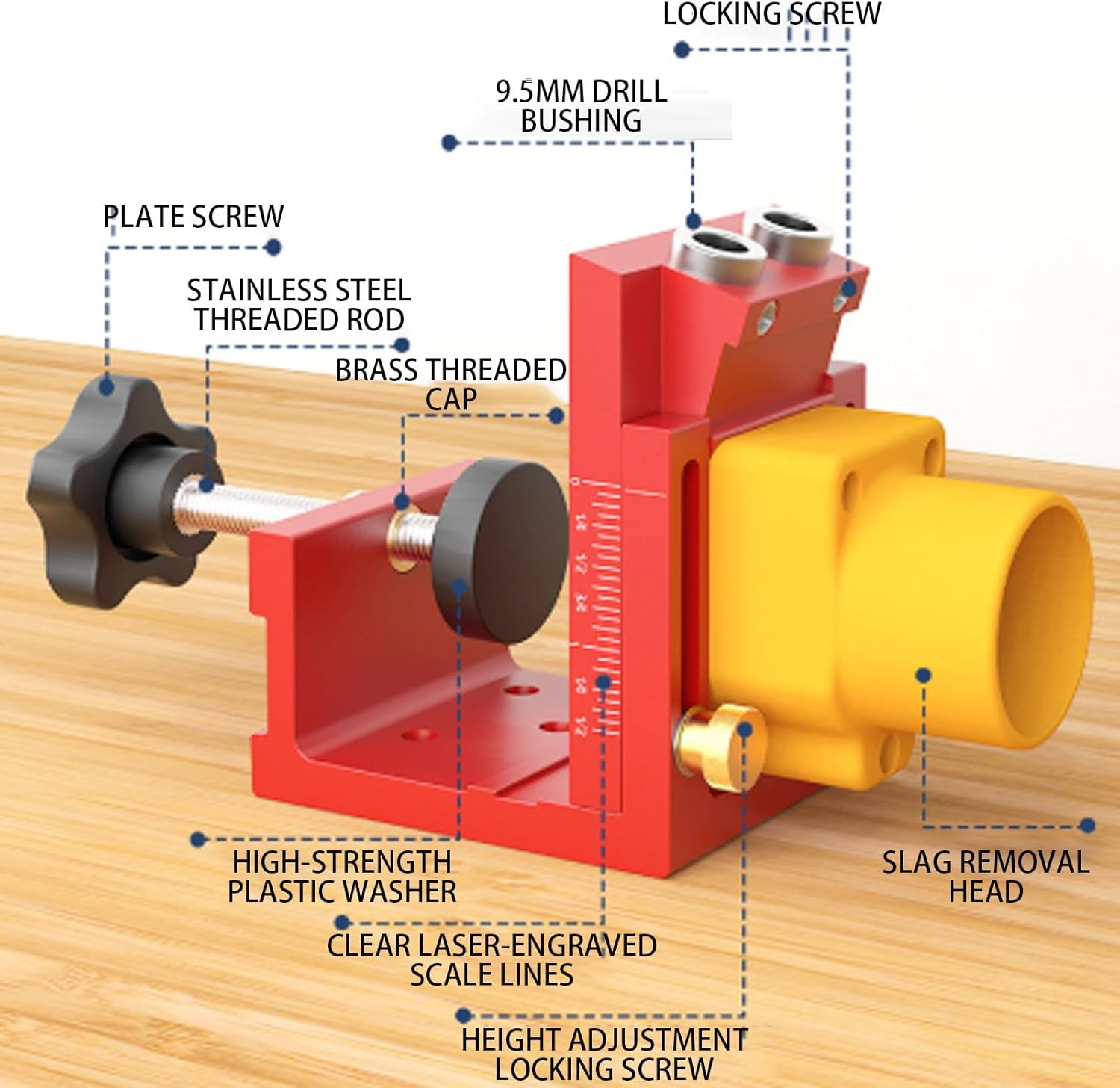 The Pocket Drill Hole System is an ultra-light and adjustable tool designed for precision in various projects. Crafted from durable aluminum alloy, it ensures reliable performance during hardware installation, repair, and assembly tasks. This system is ideal for working on decks, cabinets, desks, and more, making it a versatile choice for carpentry, metalworking, masonry, and home improvement projects. Its adaptability supports construction needs while maintaining accuracy in every drill hole. Whether you are handling repairs or engaging in detailed craftsmanship, this tool provides consistent results. The Pocket Drill Hole System is engineered to meet the demands of both DIY enthusiasts and skilled workers seeking efficiency and precision in their work.SpecificationMaterial: aluminum alloyproduct Size: as shown in the pictureFeatures: Upgraded vacuum cleaner head with slag dischargeList1× hole punch10 × hole plugs10 × screws1 × 6 angle wrench1 × 9.5mm drill bit with limiter1 × 9.5mm drill bit1 × 15mm electric screwdriver bitNote:Due to different lighting and screen settings, the item color may be slightly different from the picture.Due to different manual measurements, please allow a 1-2cm difference in size.
