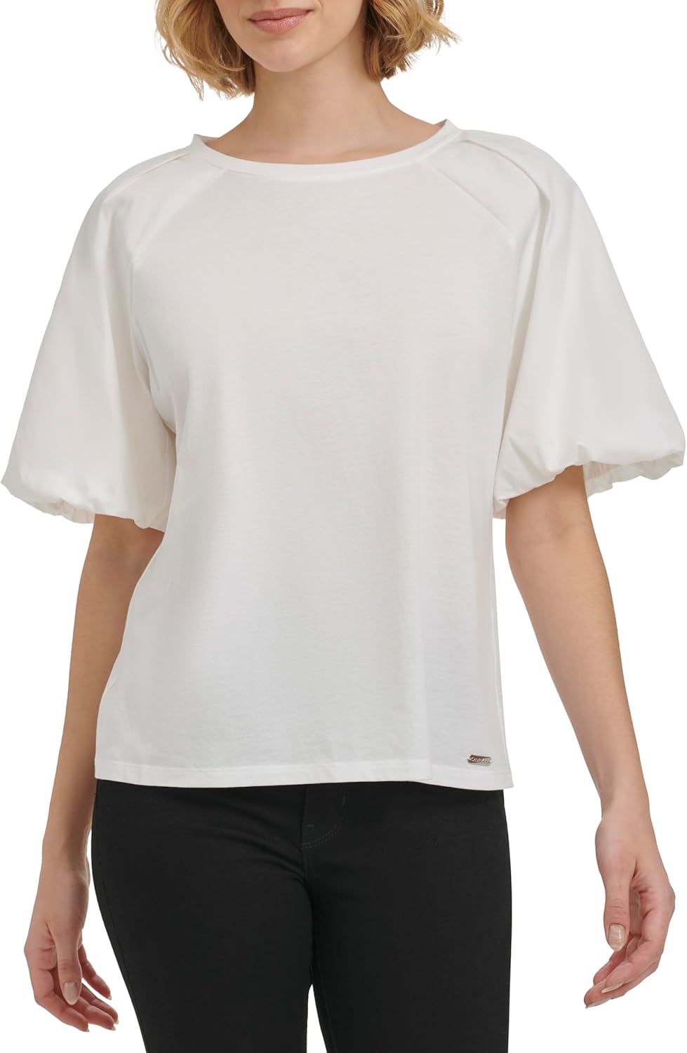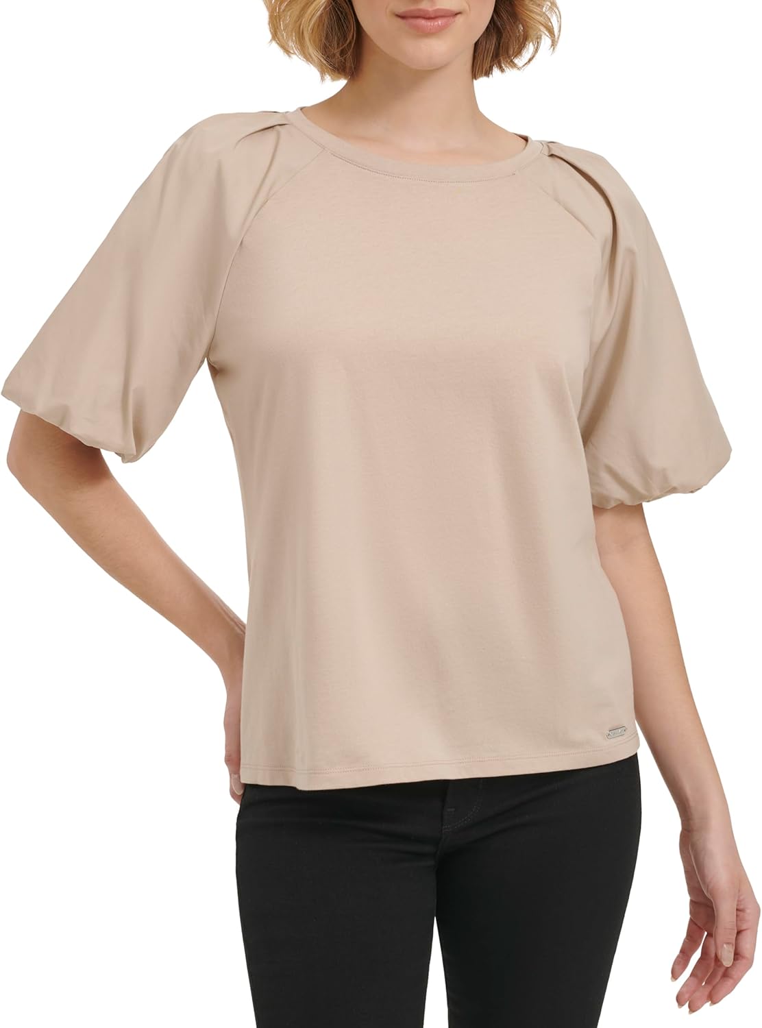This Calvin Klein Women's Sportswear Top is a Knit Mix Media Short Sleeve Blouse