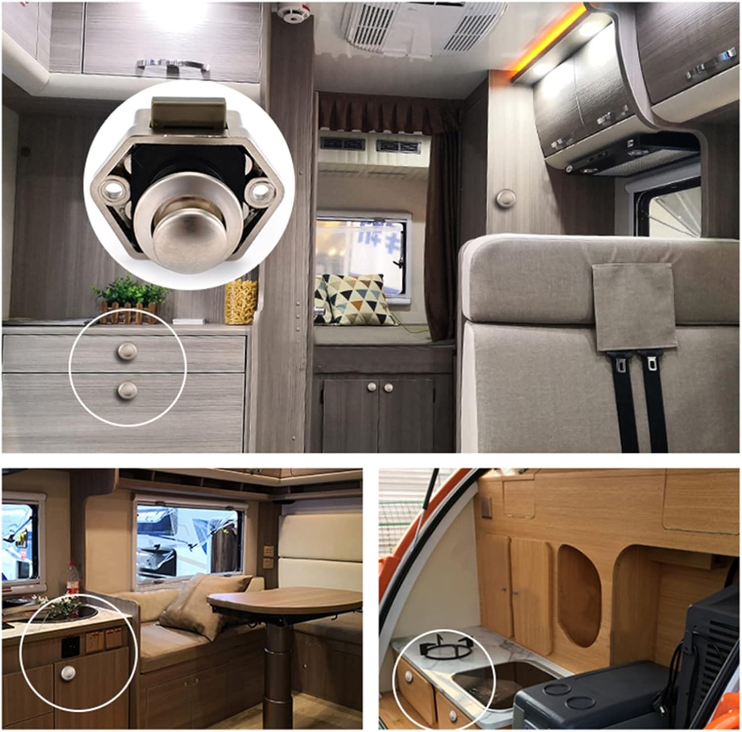 Deadbolts1. Shake handle for good processing.2. This lock is a new type with handle button type ship, yacht, rv.3. Furniture door lock. The lock itself with both locking function also handle function.4. Suitable for all kinds of furniture has the beautiful appearance, color elegant, simple installation, convenient to use.5. To avoid all kinds of yacht, boat, rv shaking in the process of moving and cause indoor furniture cupboard door open.6. The lock just press the button, lock tongue down, pull the button to open the door, buttons in addition to can be used for opening and locking doors, also can use when shake handle.Small Size SpecificationsMaterial: ABS + Zinc AlloySize: AS photo show ( just following)Cut Hole (Diameter):20mmFit For Door Thickness: 15mm-27mmFinish: Brown / Pearl Nickel / Chrome / WhiteSuitable for: all kinds of Marine/Board RV, land furniture drawers, cabinet door, cabinet furniture such as use.Package Include: 10 x locks with matching partsColor: Pearl NickelColor: BrownColor: ChromeColor: WhiteBig Size SpecificationsMaterial: ABS + Zinc AlloySize: AS photo show ( just following)Cut Hole (Diameter):26mmFit For Door Thickness: 15mm-27mmFinish: Brown / Pearl Nickel / Chrome / WhitePackage Include:10 x locks with matching parts