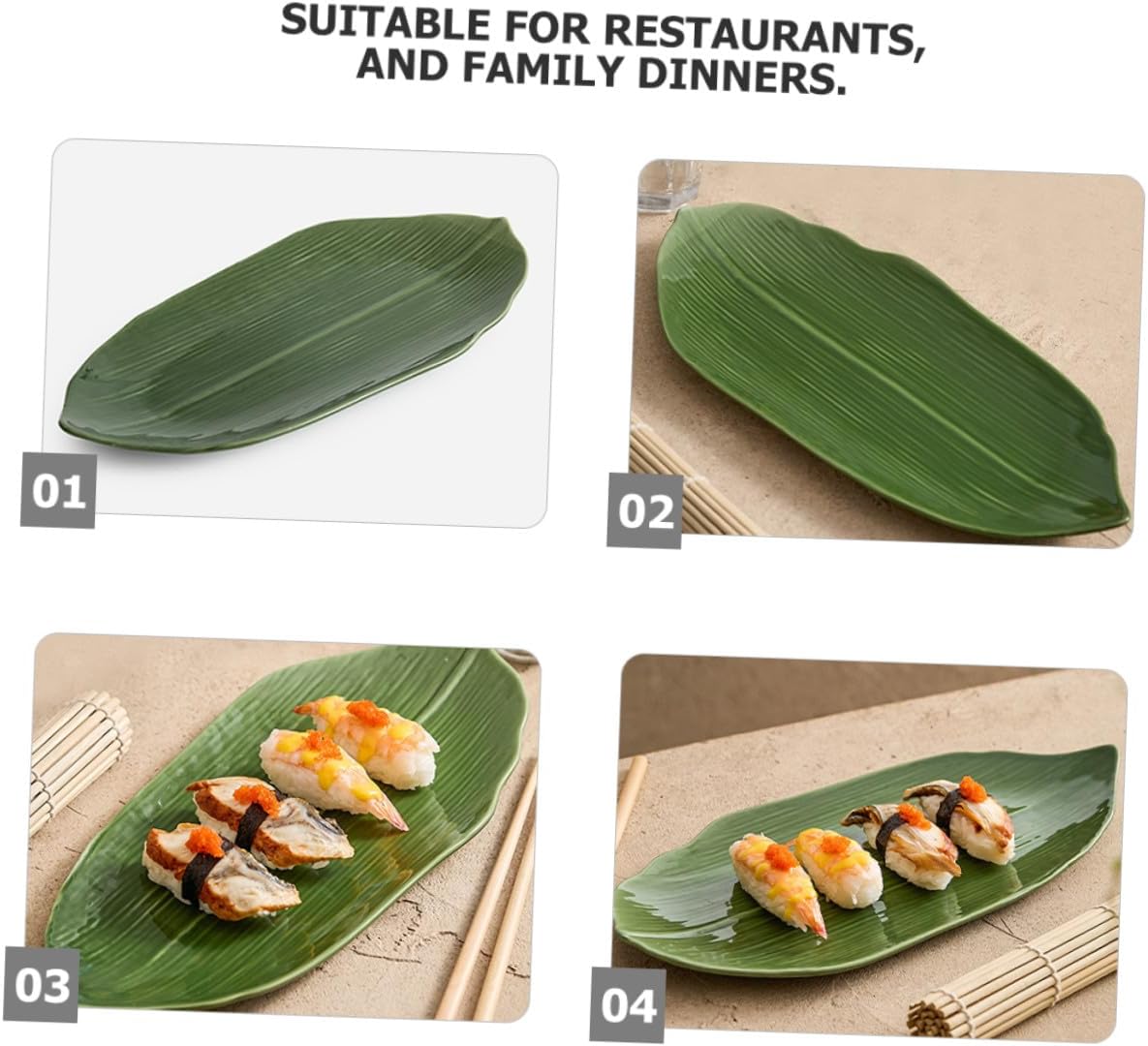 Package List 1 x food plate Features -Size:37.40X17.00X3.50cm/14.70X6.68X1.38in Ceramic Plate -Product Info:Sushi plate -Material:Ceramic food serving tray -Color:Green dessert plate - Characteristic and with dull polish. Simple and generous, smooth in lines porcelain tray. - food plate, suitable for family gathering, party, restaurant, catering, etc dish tray. - The perfect size Japanese Food Plate for you, so that it fits all the snacks and foods you plate. - A great and stylish addition to food presentation, which increase appetite and have a good mood japanese style sushi serving tray. - Multi-purpose, not only suitable for family dining, but also suitable for business occasions dessert tray.Goods Informationsushi display plate This unique and practical dish is perfect for serving a variety of foods, from desserts to sushi.dessert plate The leaf molding of the dish adds a touch of elegance to any dining experience, both suitable for home and commercial use.cake plate The stylish ceramic sushi plates with clean lines could make the food look in restaurant style