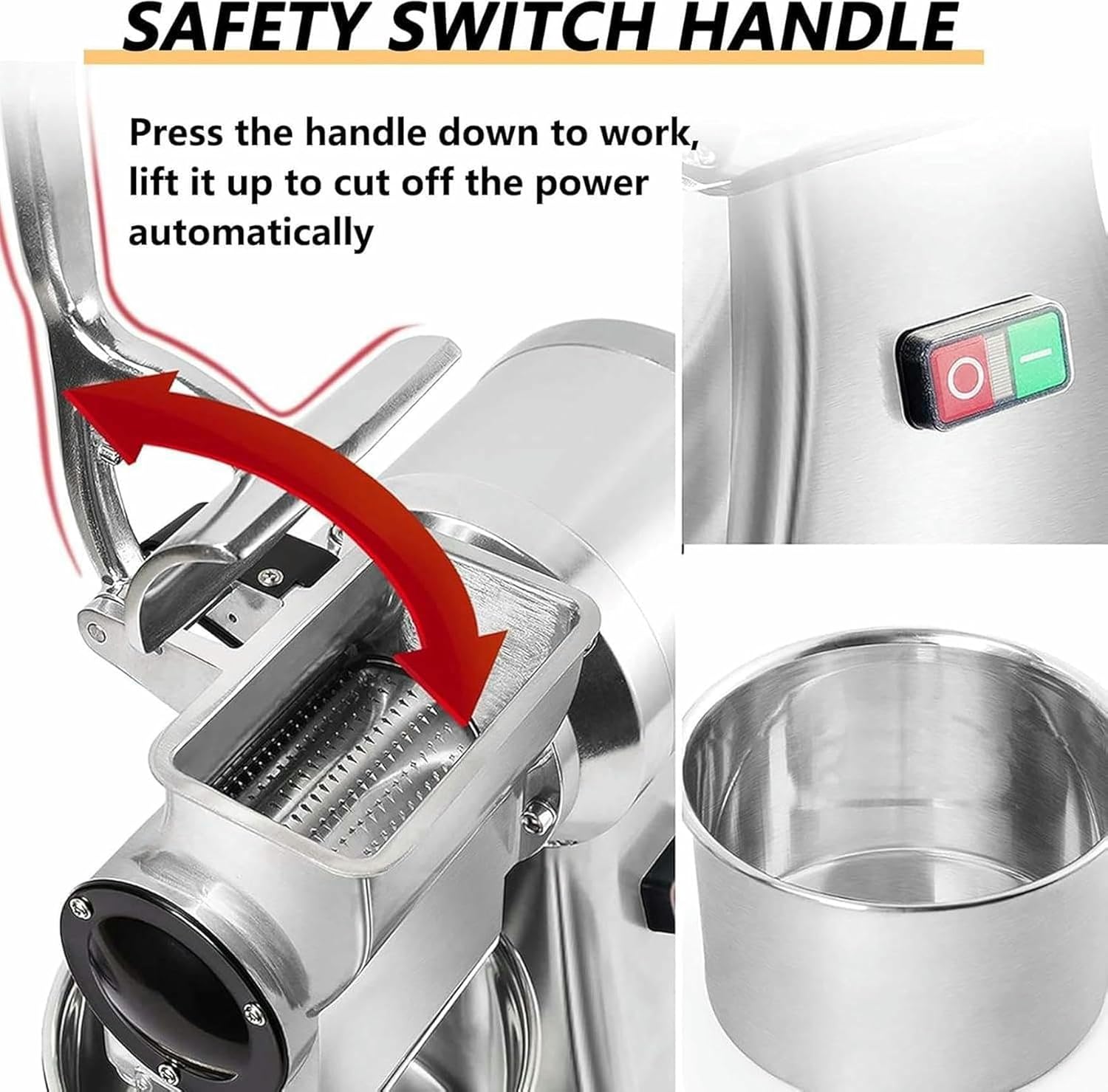 Do you still feel like preparing cheese, breadcrumbs or butter?Do you want to enjoy the taste of a fine cheese easily?This cheese electric grater is a great help in your kitchen!Manufactured in first quality stainless steel, it is safe, lasting, easy to use and helps you grate cheese quickly.Why choose our grater?● Efficient crushing: Quickly crushing cheese, butter and other ingredients in uniform filaments or crumbs to improve the efficiency of food preparation.● Commercial quality: 304 stainless steel blade and high -resistance ABS body, prolonged use without deformation.● Safe design: non -slip base + splashing cover, stable and without splashes.● Easy to clean: removable structure, the blade and the container can be washed with water.● Multifunction use: not only processes cheese, but also makes bread crumbs, chocolate, etc.Detailed parameters:● Material: Stainless steel blade 304 + Aluminum alloy body.● Power: 550 W.● Performance: 88 pounds per hour (approx. 40 kg/h).● Size: 49 x 32.5 x 48.5 cm.● Weight: 16 kg.● Applicable scenarios: pizzerias, bakery workshops, western restaurants, home.Kitchens, etc.Package content1* commercial cheese crusherIf you have any questions, do not hesitate to contact us.We will attend him in 24 hours.