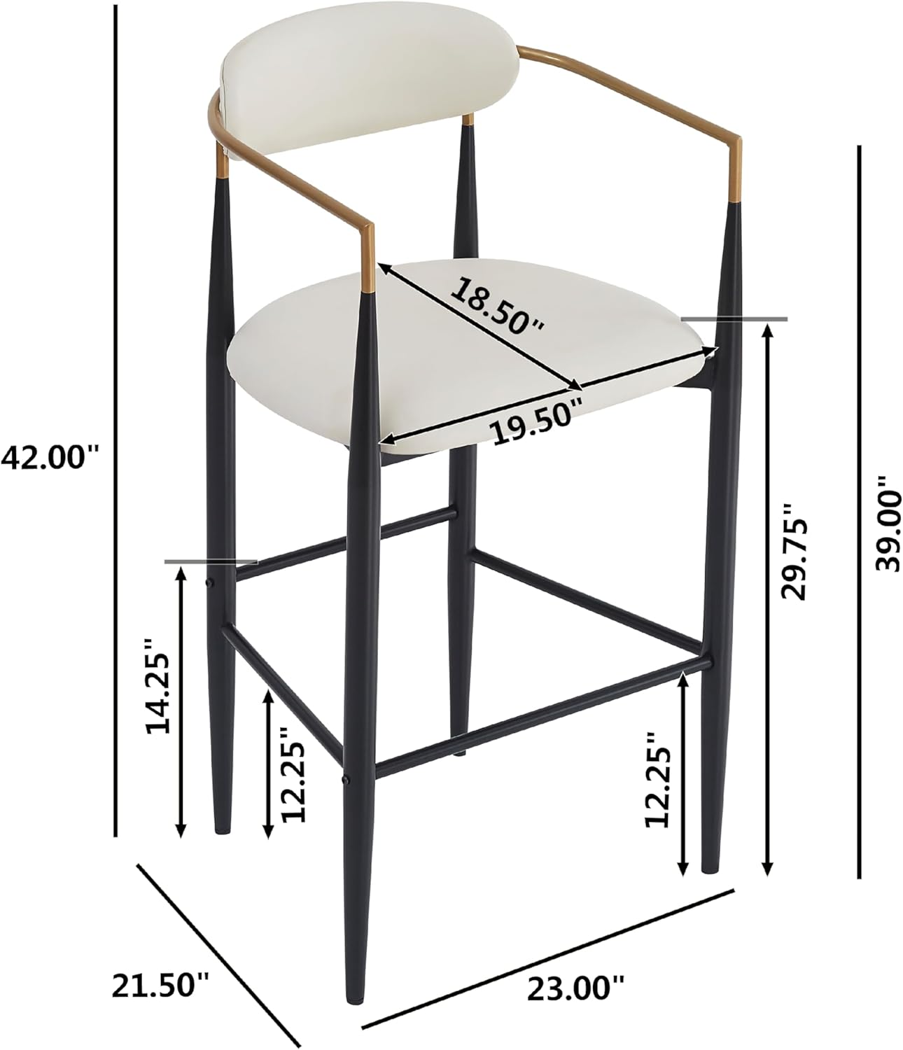 | Item Type Name | Set of 2 Melin Counter Height Faux Leather Bar Stools, Kitchen Island Side Chair with Iron Frame+Curved Backrest, Soft Seating Armchair with Footrest |