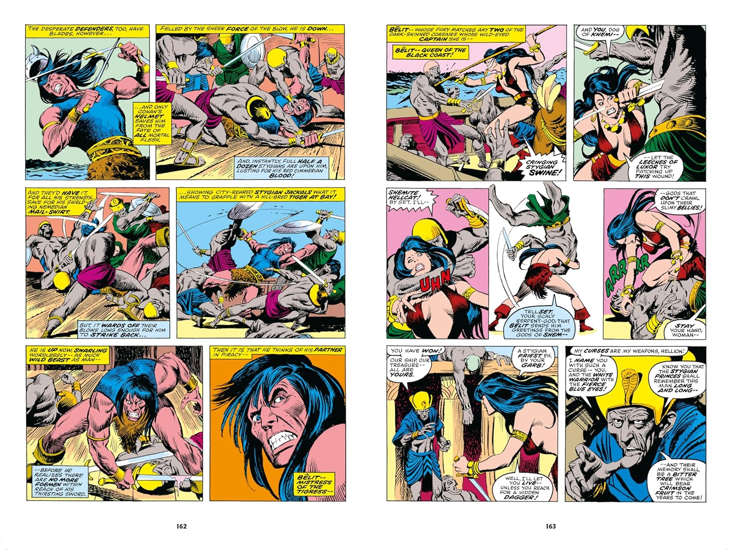 The greatest hero in sword-and-sorcery history. This is the legend of Conan!Battle runs through Conan's life like the blood in his veins. A stint with the mercenary Crimson Company isn't enough to quench his fury - but perhaps consorting with Belit, pirate queen of the Black Coast, can] Together, Conan and Belit will reave across Hyboria's high seas and into the dark depths of its jungles. There, Conan will earn his honoured name - Amra - in one of the Cimmerian's greatest epics] Master storytellers Roy Thomas and John Buscema follow with a saga that brings Conan, Kull and even Red Sonja together] All the while, the struggle to reclaim Belit's title and lands from the Stygians carries on. Read more