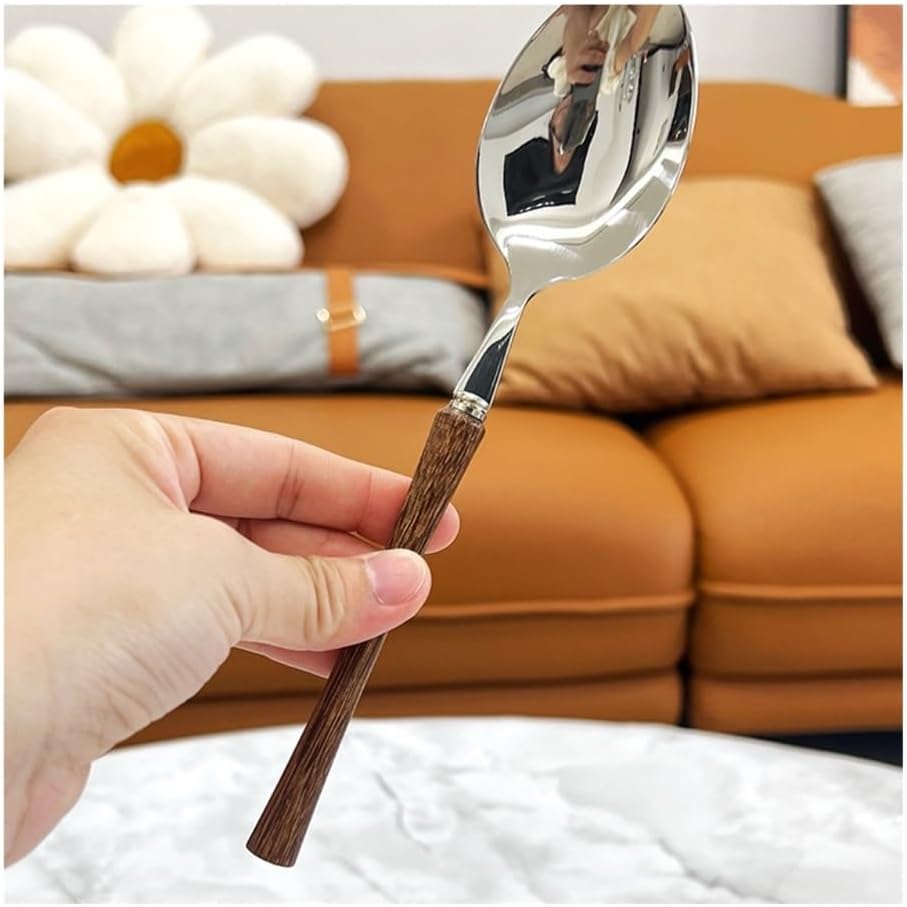 durable cooking spoons for daily use.Product Name: SpoonMaterial: 304 stainless steel + woodSize: 19.7*4.2cmPacking list: dinner spoon *4Attention1. Please confirm the size and color before purchase.2. Except the spoon in the photo, this product does not include any other items.3. Please measure the size by hand. There may be slight differences, which is normal. Please refer to the actual size. Thank you very much.4. Due to the difference of light and screen, the color of the product may be slightly different from the picture, please understand.