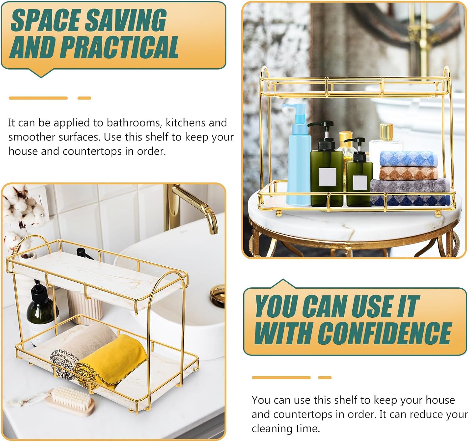 Package List 1 × bathroom countertop organizer Characteristics - Material: Iron - Size: 31.00X14.00X24.00cm/12.18X5.50X9.43in -Product Info:Skin care storage rack - You can place this shelf on the desktop stably, convenient for storage, making your bathroom or bedside table more tidy toiletry organizer. - In adoption of , this storage shelf is firm and sturdy, can support . - Fine workmanship, good texture, smooth hand touching feel, more and safer to use bathroom countertop organizer. - Can be widely applied to kitchen, bedroom, bathroom and more scenes, perfect storage rack and also decor for your home countertop vanity organizer. - Double-layers design, there is enough capacity to store and organize your belongings and keep them safer desktop makeup storage rack.Goods Informationbathroom organiser This is a practical and sturdy sundry shelf, mainly in adoption of iron material, convenient and can serve you for a long period.restroom organizer Good workmanship, reasonable double-layers design, can easily help you to store your sundries like keys, cosmetics and jewelries, make your place more tidy and bring your home a new look