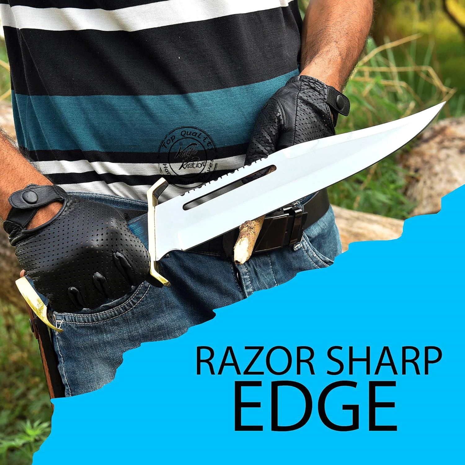 ✅ Custom Handmade Stainless Steel Rambo Style Bowie Hunting Knife, Fixed Blade Knife, Bowie Hunting Knife, Hunting Knife, Camping Knife, Knife with Premium Leather Sheath, KKH-46 ✅ DIMENSIONS: Overall Length: 16.00 inches; Blade Length: 11.00 inches; Handle Length: 5.00 inches. Blue Wood Handle with Brass Pommel & Guard. ✅ STUNNING LEATHER SHEATH, This 16.00 inches Large Bowie Knife with sheath, It is Mirror Polished Stainless steel bowie knife, this shiny razor sharp huge bowie knife is suitable for any use. It can be used as a hunting knife for deer, survival knife, camping knife, outdoor knife, cool knife. Due to high-quality stainless steel, it will never get rusted and also will hold sharpness for a long time. ✅ CHRISTMAS GIFT: Needed thing for those who keen on fishing, hunting, camping and spending time actively. A great gift for true connoisseurs of knives. Stocking Stuffers. ✅ BUYER'S SATISFACTION FIRST - 100% fulfillment and Money Back . In case there are any issues with the buy, kindly go ahead and reach us, We will give the best help to take care of the issue.