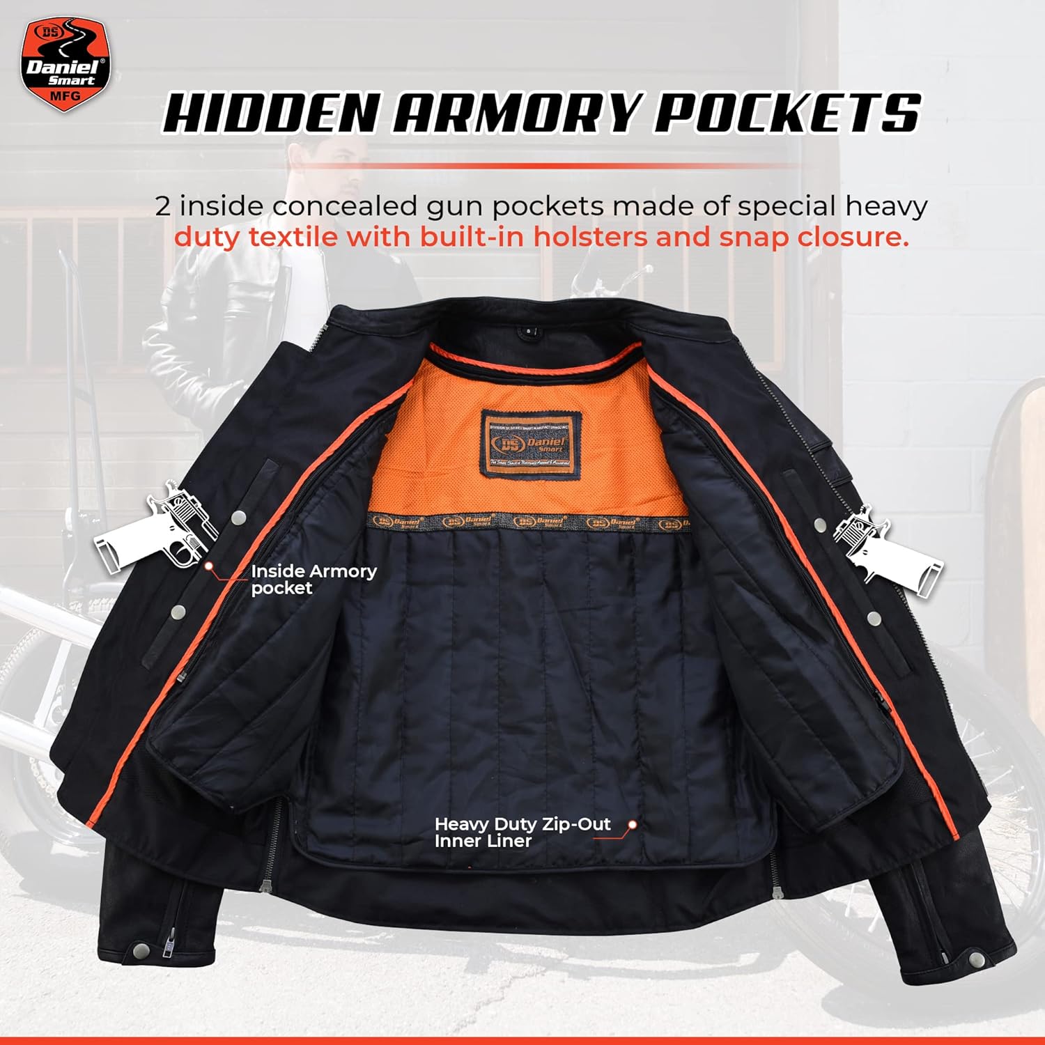 Daniel Smart black leather jacket mens are made from soft, naked cowhide. Our mens motorcycle leather jacket are the perfect choice for bikers, featuring a mandarin collar for a stylish look, stripe detailing for a sporty touch, and a perforated action back for enhanced airflow. The reinforced shoulder support of our leather riding jackets ensures durability and comfort on every ride. Daniel Smart has you covered with premium-quality motorcycle jackets leather. Designed for ultimate comfort, Our motorcycle riding leather jacket features an action back with stretch panels for flexibility while riding, a heavy mesh inner liner for full ventilation, and a zip-out, full-sleeve insulated liner, making it perfect for both hot rides and cold weather. Designed for a modern fit, our men's leather jacket features full-opening zippered sleeve cuffs, two sleeve vents, two front vent pockets, and four underarm eyelet vents for enhanced airflow. Our mens leather biker jackets also include four outside pockets and two inside carry pockets made of heavy-duty textile with built-in insides and snap closures, ideal for securely storing essentials like a wallet, phone, or other personal items while riding. The Daniel Smart leather jacket men motorcycle offers a modern fit and comes in sizes S–8XL to ensure the perfect fit. Our men's leather motorcycle jacket features full-opening zippered sleeve cuffs and side zippers at the bottom for enhanced comfort while riding. Designed for bikers and travelers, this stylish and durable mens leather riding jacket keeps you road-ready. For further details, please see the size chart image. At Daniel Smart, we prioritize your satisfaction by delivering high-quality real leather motorcycle jacket men that enhance your riding experience. From premium genuine leather motorcycle jacket men to stylish insulated leather motorcycle jacket, we are dedicated to providing products that offer excellent value and exceed your expectations.