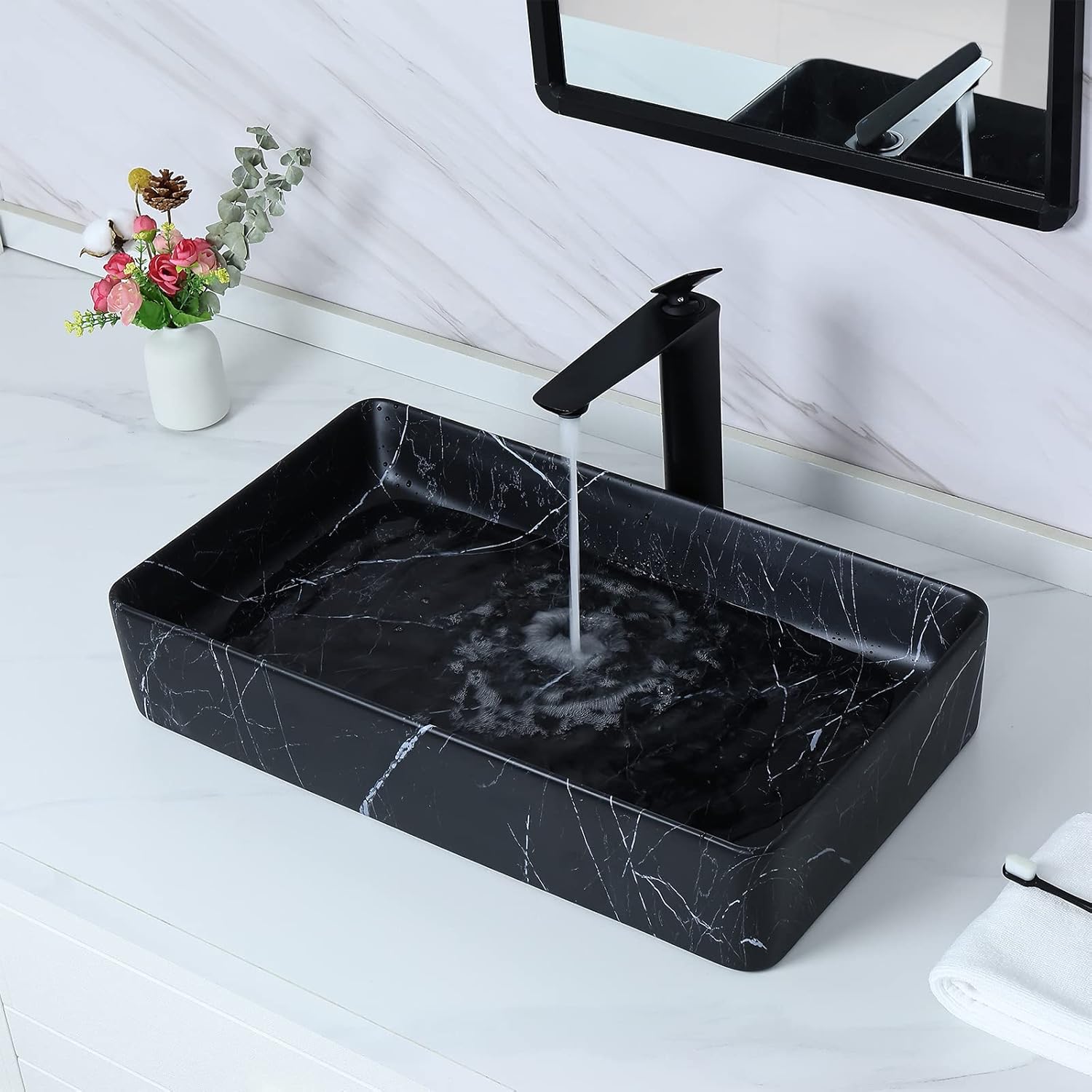 | Included Components | Nordic Marbling Matte Black Rectangle Vessel Sink with Pop Up Drain |