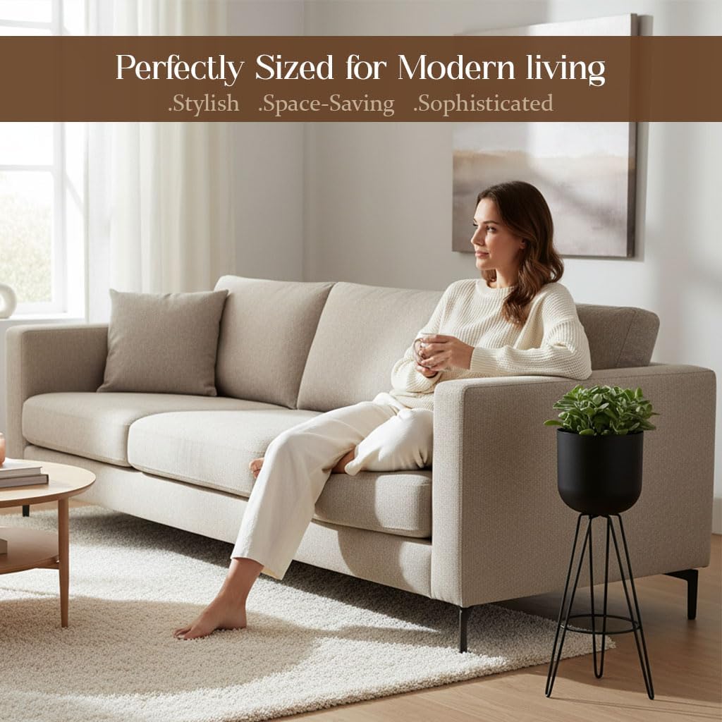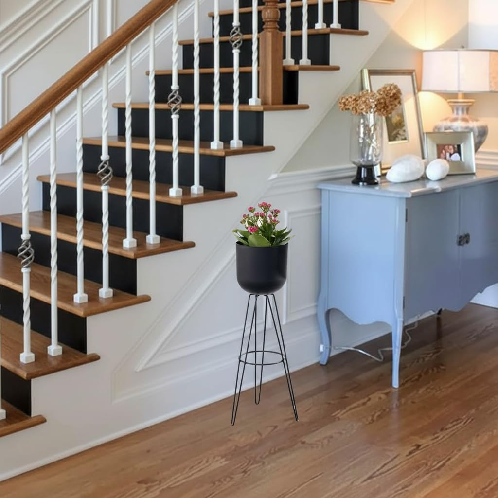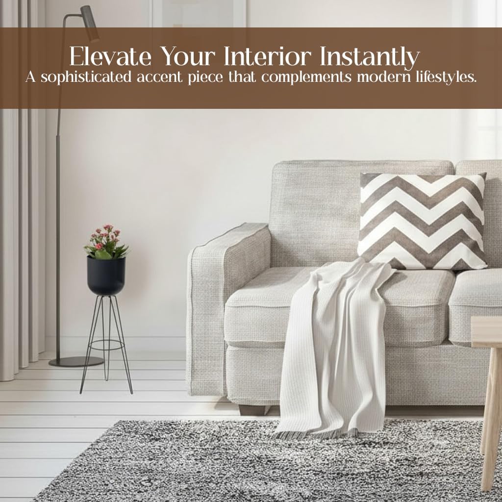 "Add freshness to your living room, reception, balcony, porch, and deck with the Decozen Metal Decorative Small Planter With Plastic Pot. The metal decorative planter makes a perfect gifting idea and is sure to make everyone smile. A plastic pot in cylindrical shape is supported by beautifully designed three metal legs with a circular ring in between. The Decorative Flower Pot has enough space for soil that allows flowers and ferns grow freely. You can choose from large and small sized planters for your space. A combination of small and large planters in the entryway of your home will create an impression on everyone. Due to the robust construction, this plant display stand will adorn your space for years. It requires minimal maintenance and needs just a damp cloth wipe."