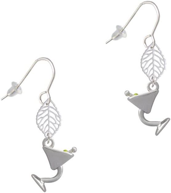 Silvertone Martini Drink with Olive Silvertone Leaf French Earrings. Charm size is approx. 0.75 x 0.42 x 0.25 inches (HxWxD) including loop. Small Open Leaf connector is approx. 0.55 x 0.37 x 0.06 inches (HxWxD). Steel French Ear wires come with a rubber nut. Leaves of spring and summer represent hope, renewal and revival. Leaves of fall represent the change of season. PLEASE NOTE: Our products are not intended for individuals 14 years and younger.