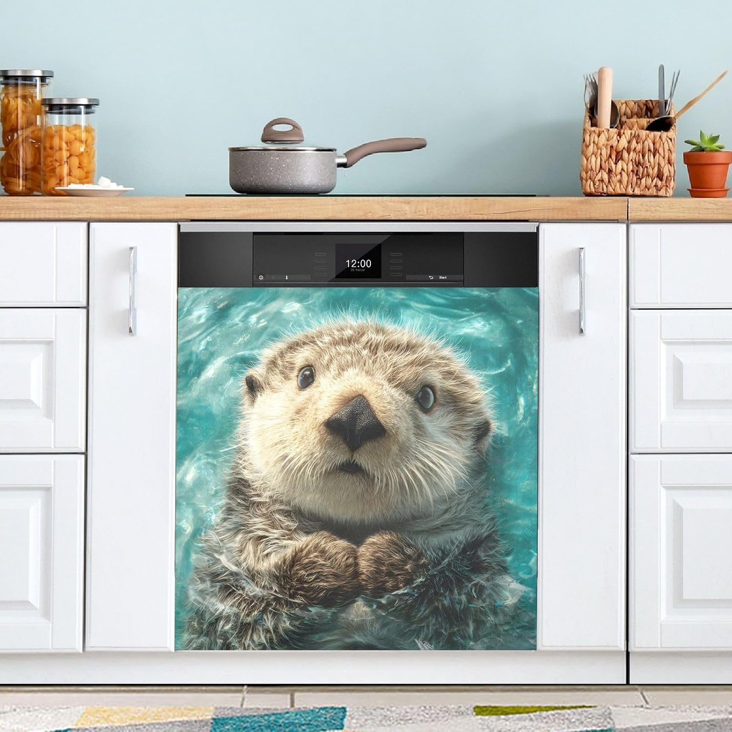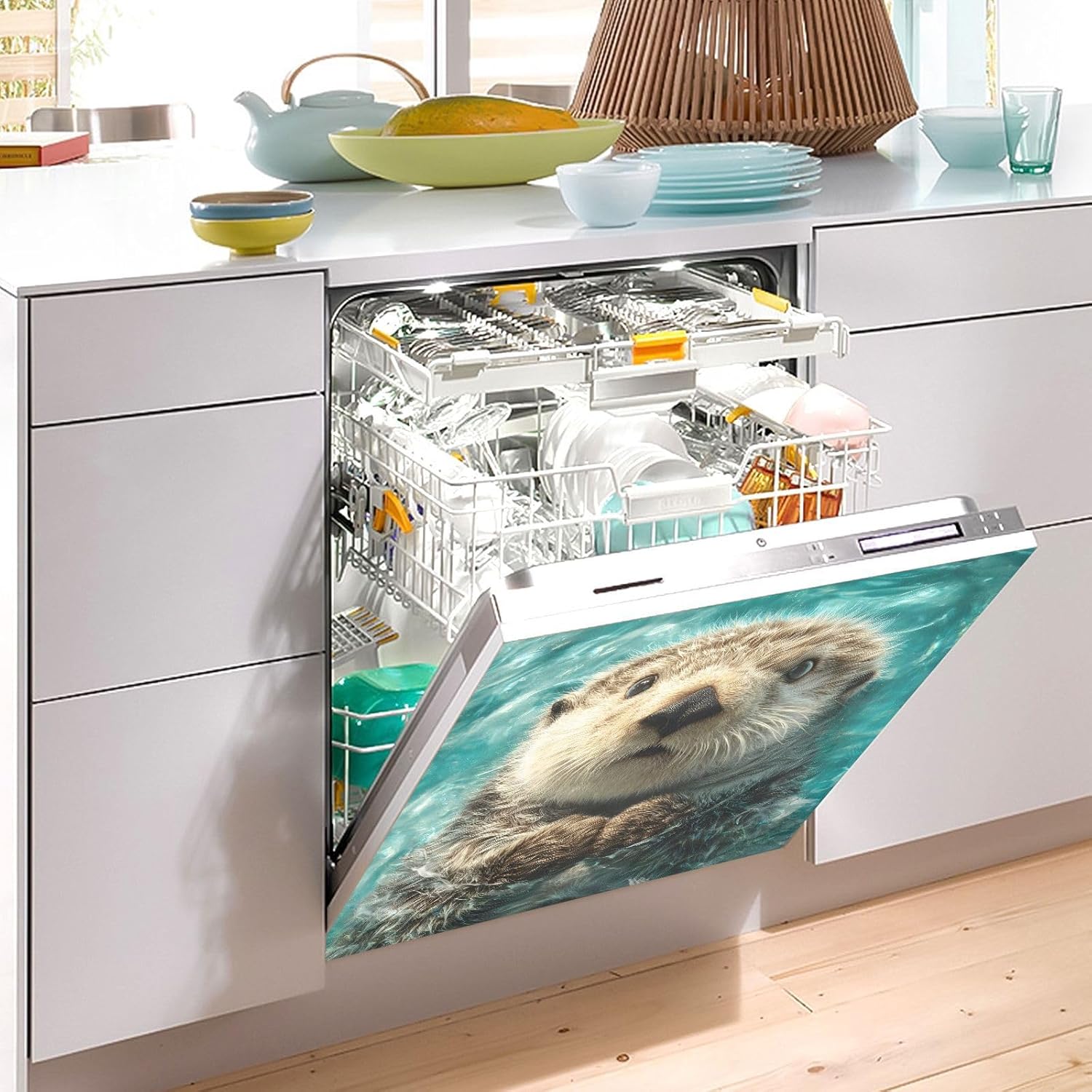 Dishwasher Magnet Cover Large Magnetic Stickers Sea Otter Front Dishwasher Cover for Home Kitchen Refrigerator Decorative Lid