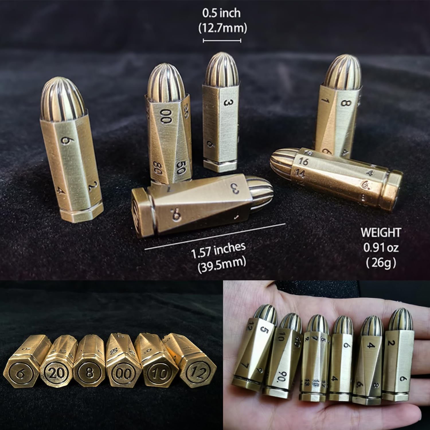 | Included Components | You will receive: -- 1 x Dice cylinder holder-- 1 x Bullet dice set (D4,D6, D8, D10, D12, D20) |