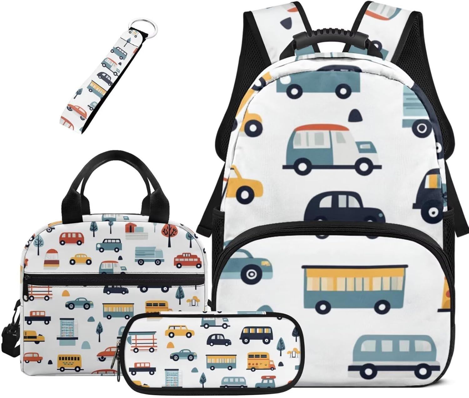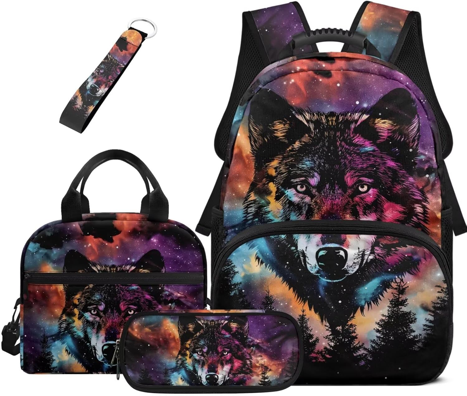 Package Included: 1* Backpack + 1*Lunch Bag + 1*Pen Case + 1* Water Bottle Sleeve 4-in-1 bookbag set is suitable for primary school, middle school, college students.Multi-functional backpack set suitable for school, hiking, travel, outdoor, sports, business trip, travelling, camping and other outdoor activities.