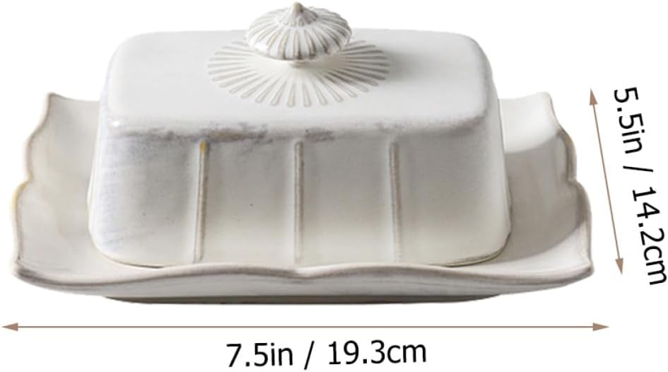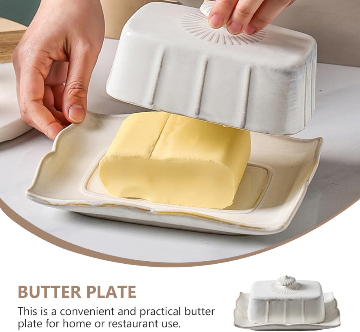 Package Include 1 x Set of Butter Box with Lid Characteristics -Material: Ceramic. -Product Info:Butter box - , construction to last for a lifetime of use. Beautifully patterned and well made, suitable for most home decoration styles butter dish. - The product is a perfect assistant for kitchens, hotels, restaurants, food stores, restaurants, etc butter dish for refrigerator. - This is a very convenient and practical small plate that can be applied to your daily life well butter dishes. - Wonderful size for storing butter sticks, cakes, cheese, fruits, bread, ham and other things. - Equipped with a matching creative lid to keep the safe and fresh for people to use for a long time cream color butter dish.Goods Description dishes for any event, and can hold butter, cheese, etc.butter serving dish It is perfect for any occasion, family reunions, parties, birthdays, anniversaries, engagement, birthday party.serving platter The dessert display plate is made of material