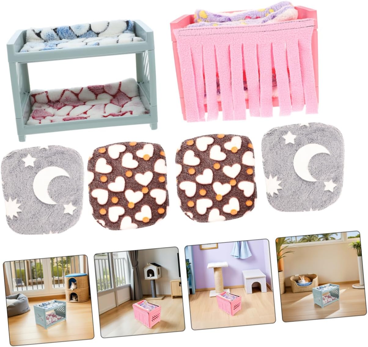 Package List 2 x Hamster Bed 4 x mats 4 x blankets Features -Modern aesthetic: vibrant color combination enhances the visual appeal of your pet's habitat, making it a stylish addition to your living space -Color:Assorted Color -Product Info: Pet bed -Hamster Bed: easytoclean materials ensure a sanitary environment, maintaining a clean space for your pets -Size:24.00X17.00X15.00cm/9.43X6.68X5.89in -Cozy sleeping area: equipped with soft bedding and blankets to provide a warm and comfortable resting spot for your small pets hamster small bed -Material:Plastic, cloth -Universal fit: designed for small animals like hamsters and guinea pigs, offering a versatile solution for their sleeping and hiding needs hamster house -Interactive design: doublelayer structure encourages pets to explore and engage in playful activities, supporting their physical and mental wellbeing hamster bed with plush cushionGoods Informationguinea pig bed for small pets seeking comfort and security, this hideout bed combines style and practicality.hamster sleeping nest Its compact structure fits seamlessly into cages or play areas, providing a dedicated space for your pet to unwind and feel at ease.hamster hideout house The soft materials and thoughtful design make it ideal for sleeping, hiding, or relaxing