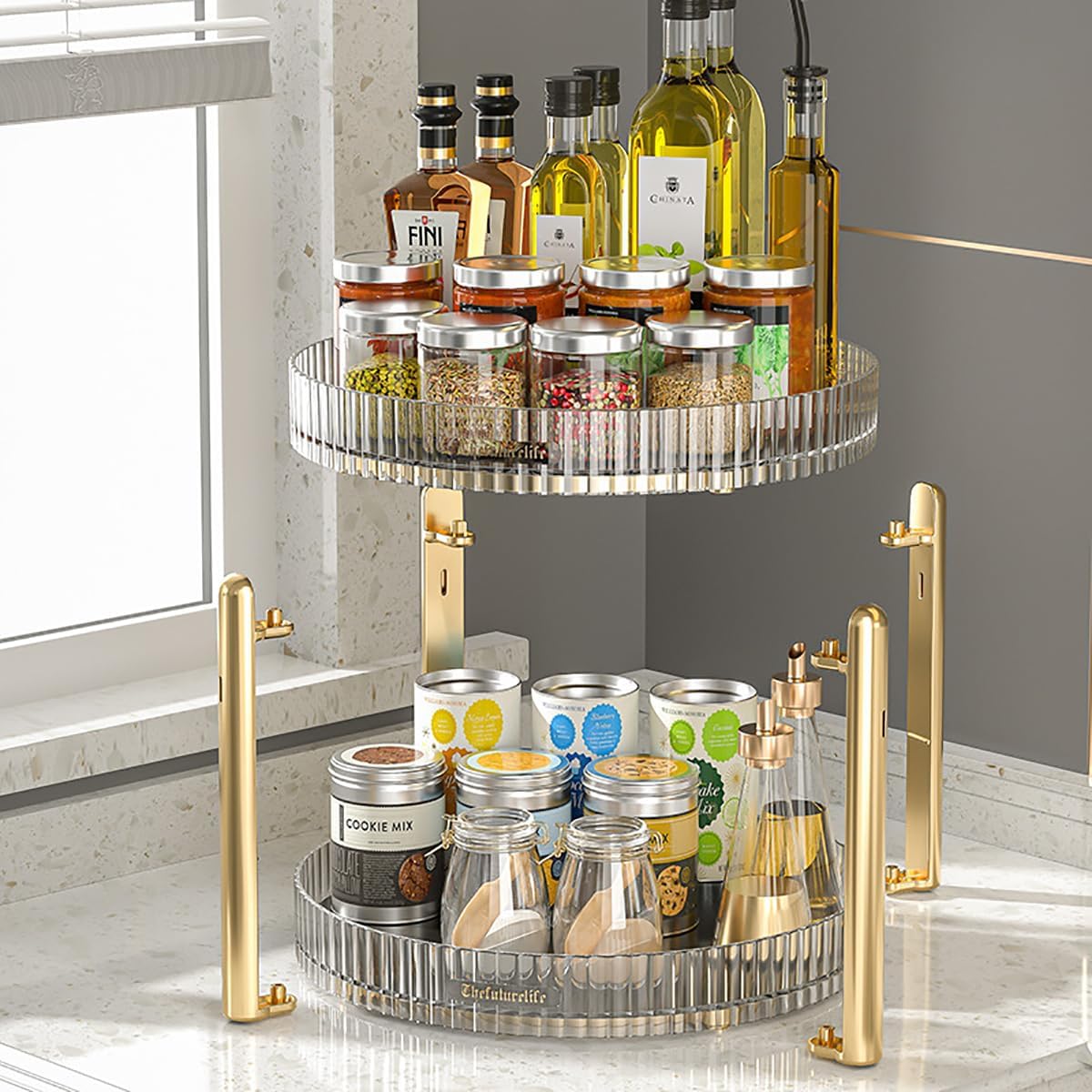 Kitchen Spice Organization Enhance your meal prep area with the convenience of lazy susan turntable. Great for storing spices, condiments, and cooking essentials, it spins smoothly to bring the item you need to the forefront, making your culinary endeavors more streamlined and organized. Kitchen Countertop Organizer Transform your kitchen countertop into a barista’s paradise with lazy susan. This rotating turntable provides easy access to your coffee pods, tea bags, sugar, creamers, and stirrers, allowing for a quick and effortless beverage station setup. Under Sink Organizer Designed for clarity and convenience, effortlessly view the contents and quickly locate exactly what you need. Bathroom Makeup Organizer Sleek Modern Appeal: Made with premium enduring acrylic, our large lazy susan offers a sleek look to elevate any space. Their transparent nature improves accessibility and display, for a stylish, organized home.