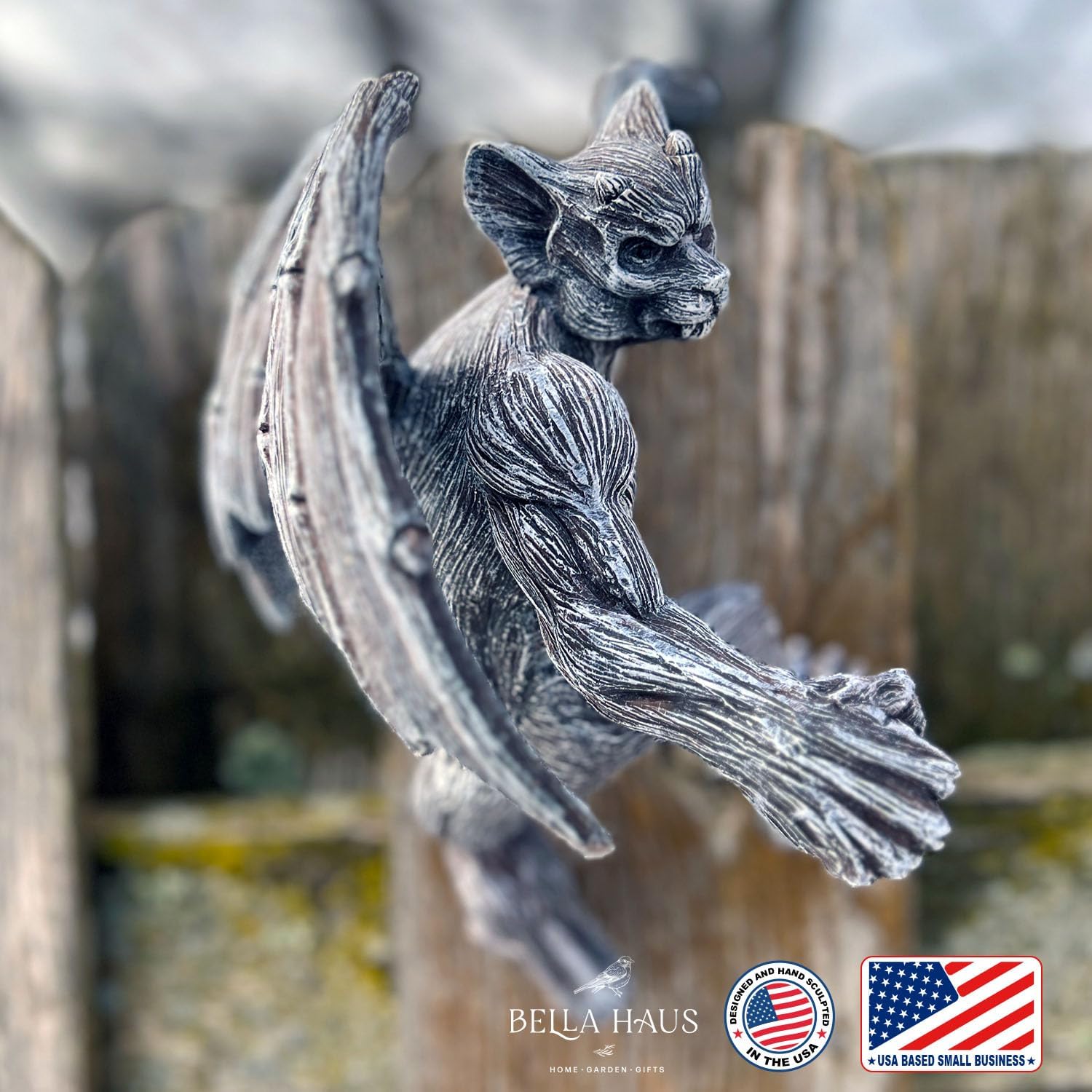 Dragon Winged Gargoyle Fence Hanger – Outdoor Wall Decor- Detailed Fence Topper Hanging Statue- Gothic Climbing Grotesque Dragon for Fence, Garden Patio, Porch (10" Gargoyle)