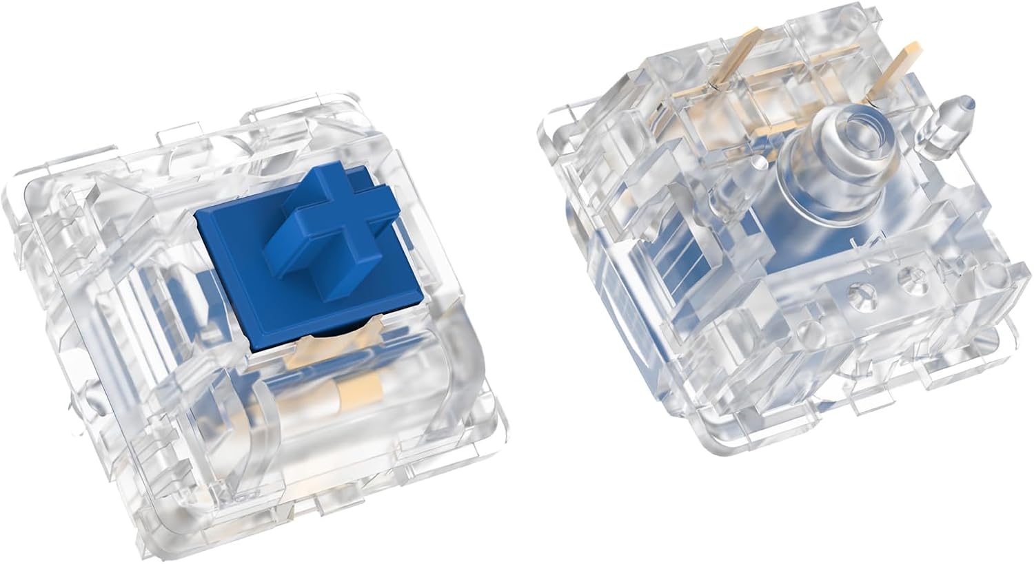 DUROCK Dolphin Silent Linear Switches are similar to the regular linear switches. It is the same molds, Materials and performance as the Silent Alpaca switches. Silent Dolphins have the same great materials for housing and stem while adding muting material to the stem rails that dampen the acoustics of your key strokes. These Silent Linear switches are great for sound-sensitive environments such as the office or any common areas. DUROCK Dolphin Silent Linears Feature: 110 included in each pack Housing: Transparent Clear Stem: 19-4052 Classic Blue, POM Spring Force: 62g Bottom Out Style: Silent Linear 5-pin PCB mount Light factory lube Clear shell is better to setup for RGB keyboards that want to get the most lighting through.