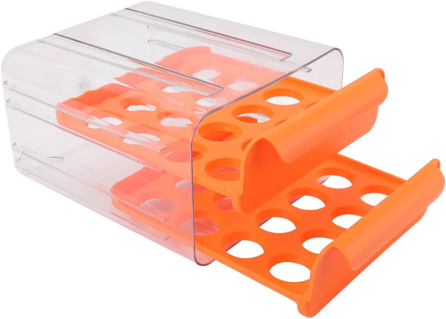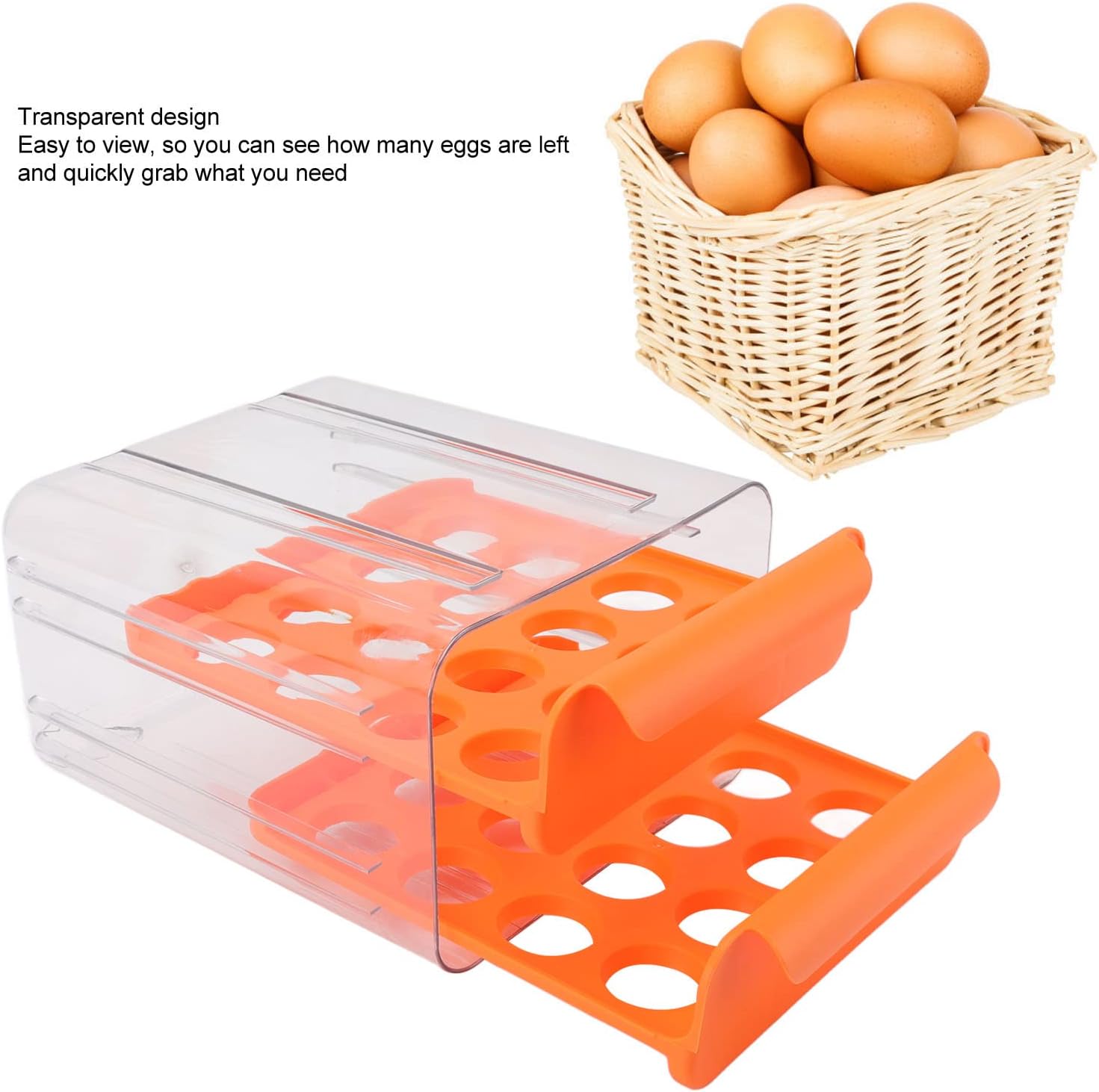 Egg Holder for Refrigerator,Egg Drawer,Double Layer Transparent Egg Container for Refrigerator,22x24x14cm 32 Lattice Large Capacity Egg Storage Box For Kitchen Refrigerator.Important information:【Double-layer Design】Egg holder with double-layer design, each layer can store up to 16 eggs, it can be stored in large capacity. He can also store eggs in stacks, helping you save space and make it suitable for refrigerators.【Recess Design】This egg storage container is designed with a conical groove, which can accommodate different types of eggs and shaking or crushing, which is very practical and convenient.Feature:1. CLEANING NOTE: Egg storage box clean these egg holders with mild soap and water, do not put them in the dishwasher.Specification:Item Type: Egg DrawerMaterial: PP, PETProduct Size: Approx. 22x24x14cm/8.7x9.9x5.5inGross Weight: Approx. 900g/2.0lbPackage List:1 x Egg Drawer Note:All data are measured manually, and there are certain errors in the measurement results.