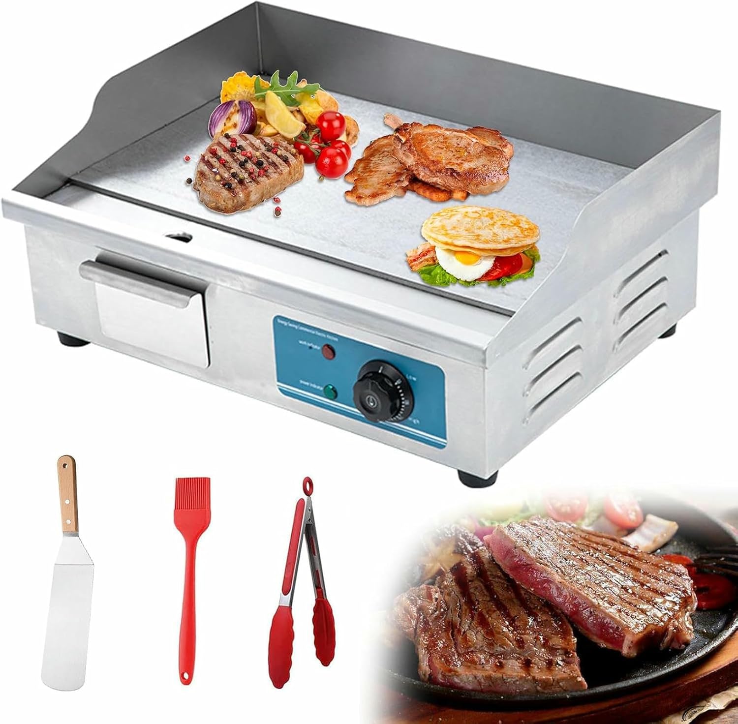 Business MachinesSpecification: Parameter Power: 3000W / 4400W Body Material: Stainless steel Cooking Plate Material: Cast Iron Temperature Control Range: 122°F-572°F (50°C-300°C) Cooking Plate Dimension: 550x295mm / 730x400mm Cooking Plate Thickness: 0.3" (8 mm) Overall Dimension (with Feet): 550x390x195mm / 730x480x230mm Net Weight: 18.5KG / 27KG Package included: 1 x Electric Griddle 1 x Spatulas 1 x Brushes Notes: 1-2cm error might exist due to manual measurements, please kindly understand. The colors deviation might differ due to different monitor settings. Tips 1. The temperature of the heating plate gradually decreases from the center of the griddle to the surroundings. 2. You can put the cooked food on the edge of the grill to keep it warm. Make raw meat or fried rice in the middle of a hot plate. 3. When not using the machine, please apply a layer of oil on the surface to prevent rust. 4. When cleaning with water, please pay attention not to pour water into the product, so as not to burn the wire.