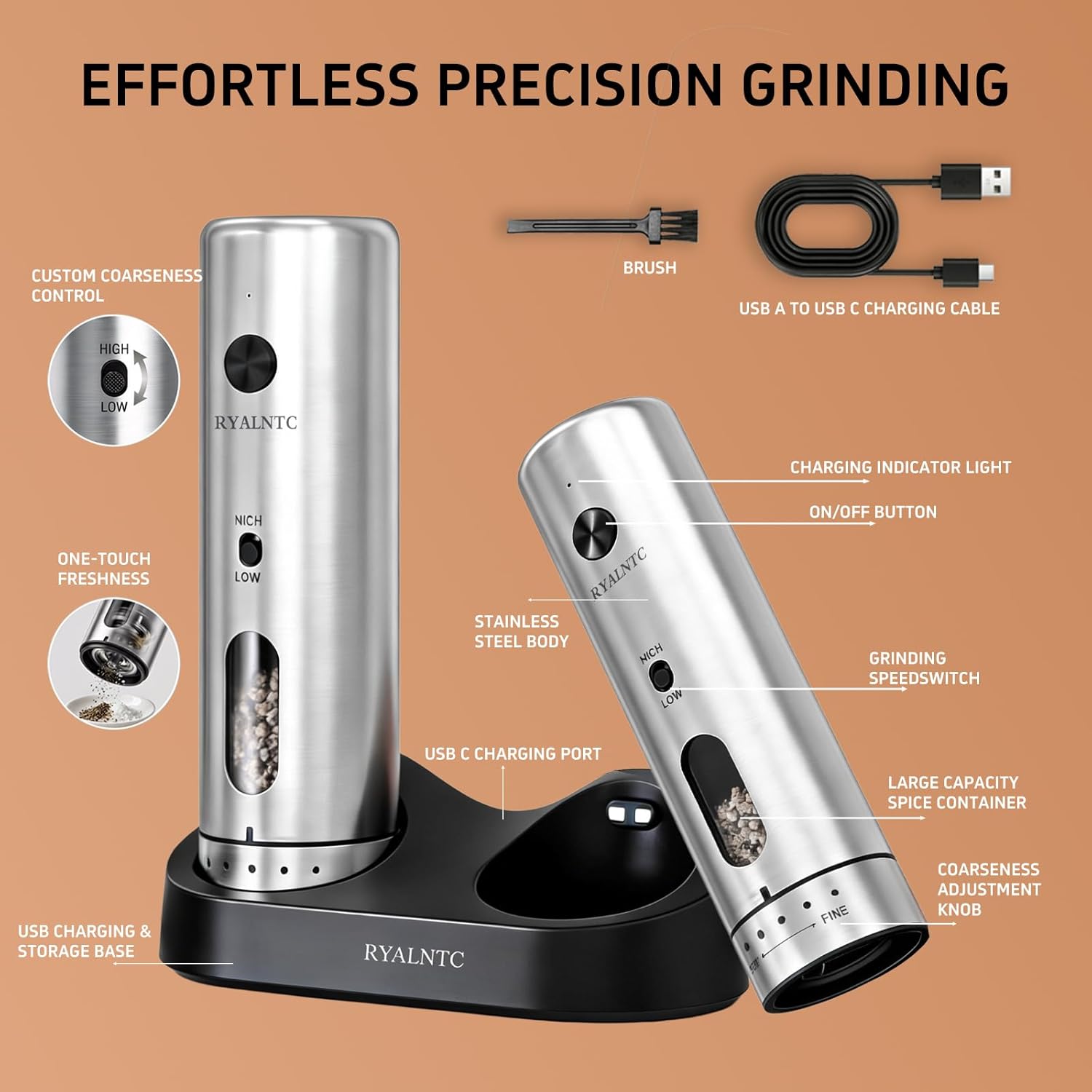 | Included Components | Two pepper grinders and one charging base |