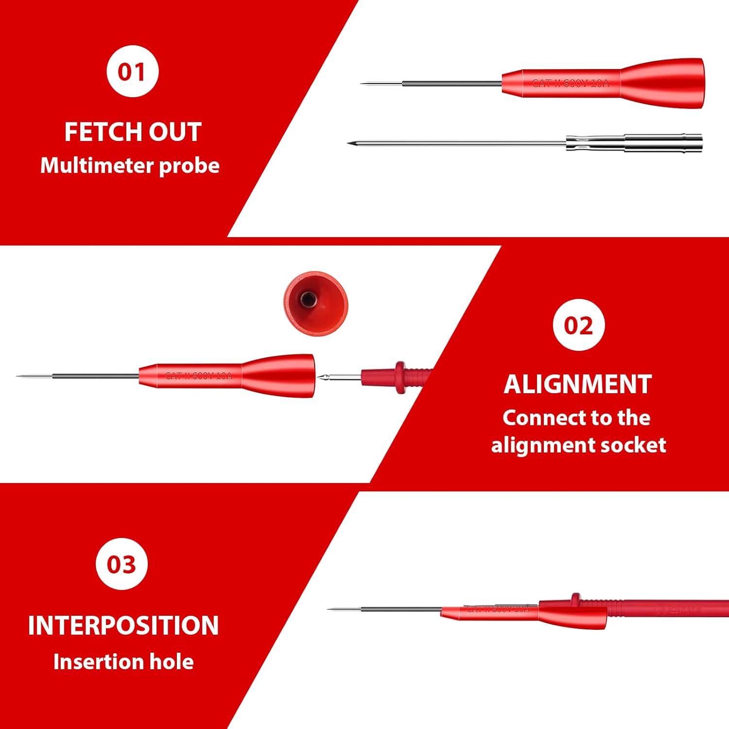 Crafted from durable metal and robust materials, these probes withstand the rigors of daily use—no more worrying about bent or damaged tips. The red - and - black color coding eliminates guesswork, helping you quickly identify positive and negative connections. Compatible with most digital multimeters, they’re a versatile addition to any toolbox, whether you’re a professional electrician, electronics enthusiast, or weekend DIYer.
