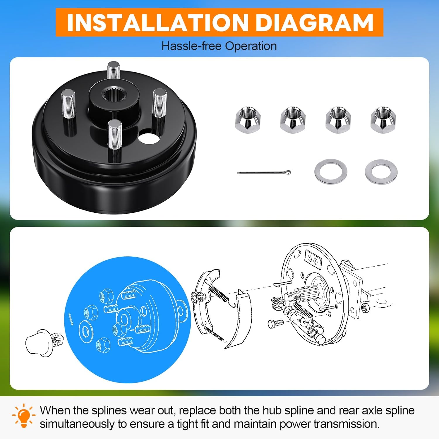 | Included Components | Brake Drum Hub for EZGO TXT Golf Carts *2, Cotter Pin *2, Lug Nut *8, Thick/Outside Pear Brake Drum Spacer *2, Thin/Inside Pear Brake Drum Spacer *2 |