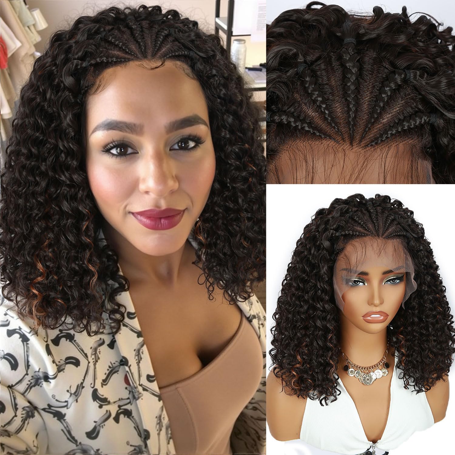 Fancy Hair Cornrow with Curly Hair Wig HD Lace Front Braided Wig with Baby Hair Pre Plucked Glueless Transparent 13x4 Inch Lace Frontal Wig for Black Women