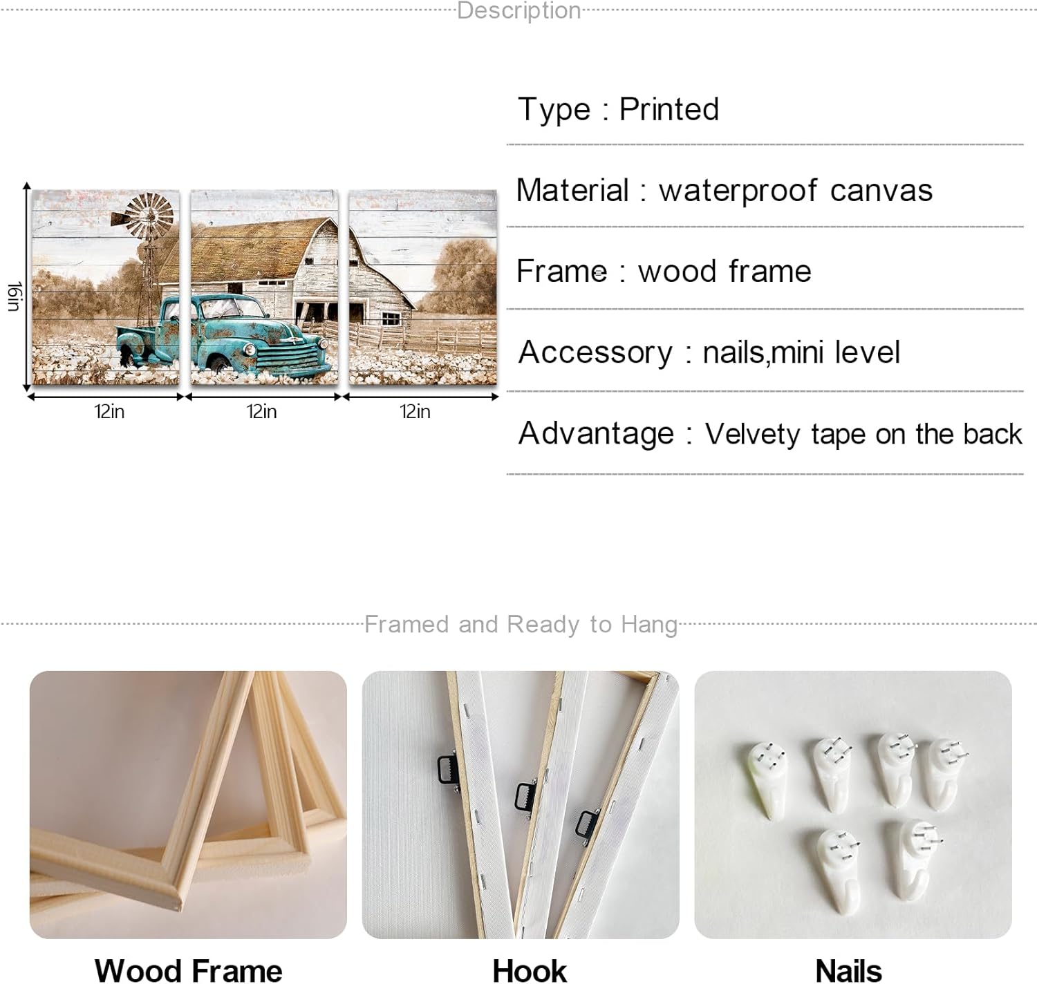| Size | 12"x16"x3 Panels |