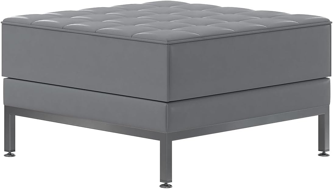 Your office reception space speaks to who your are as a company and this black LeatherSoft upholstered sofa makes quite a statement.This trendsetting piece features a straight arm design and an integrated stainless steel frame that gives an upscale, modern look to your space. Smooth back and tufted seat cushions are fixed in place to prevent slippage and are generously padded for exceptional comfort. LeatherSoft is leather and polyurethane for added softness and durability. Make a great impression on your clients, customers, and guests with this innovative contemporary chair. This progressive style chair brings comfort and trend-setting style to your waiting room, reception area or home.