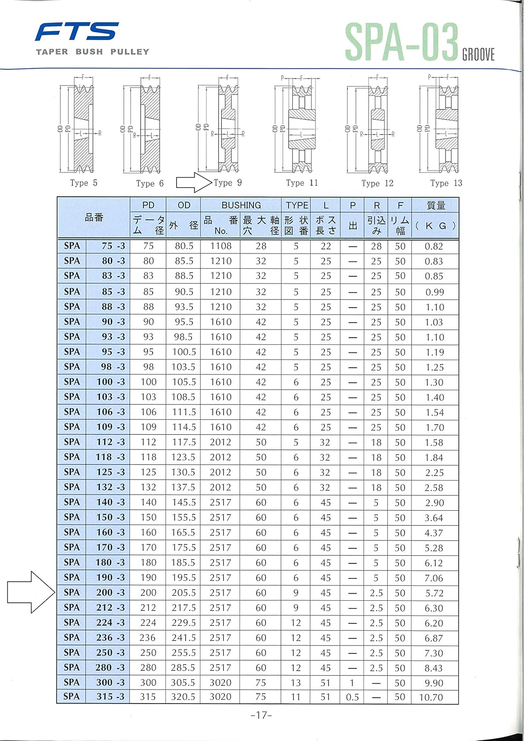 TB bushing system No shank or keyway required. Easy to position and remove on shaft. Taper lock construction creates reliable tightening power. You can use either a regular V-belt (A/AX) SP belt (SPA) belt.