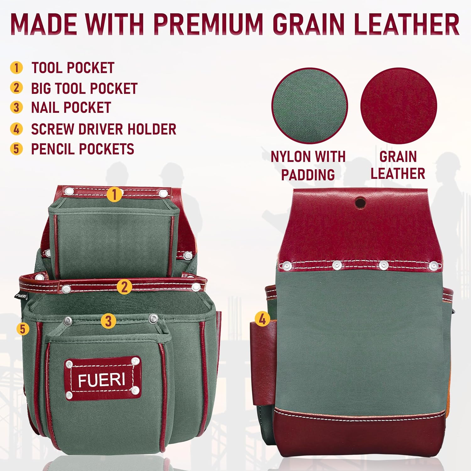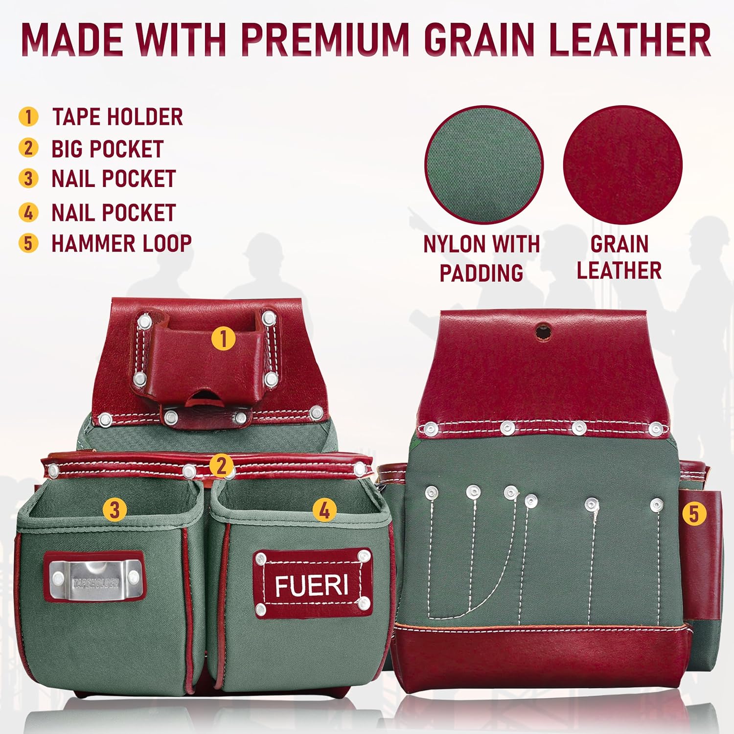 | Included Components | Hammer Holder, Suspender Loops, Tool Bel, Tool Pouches |