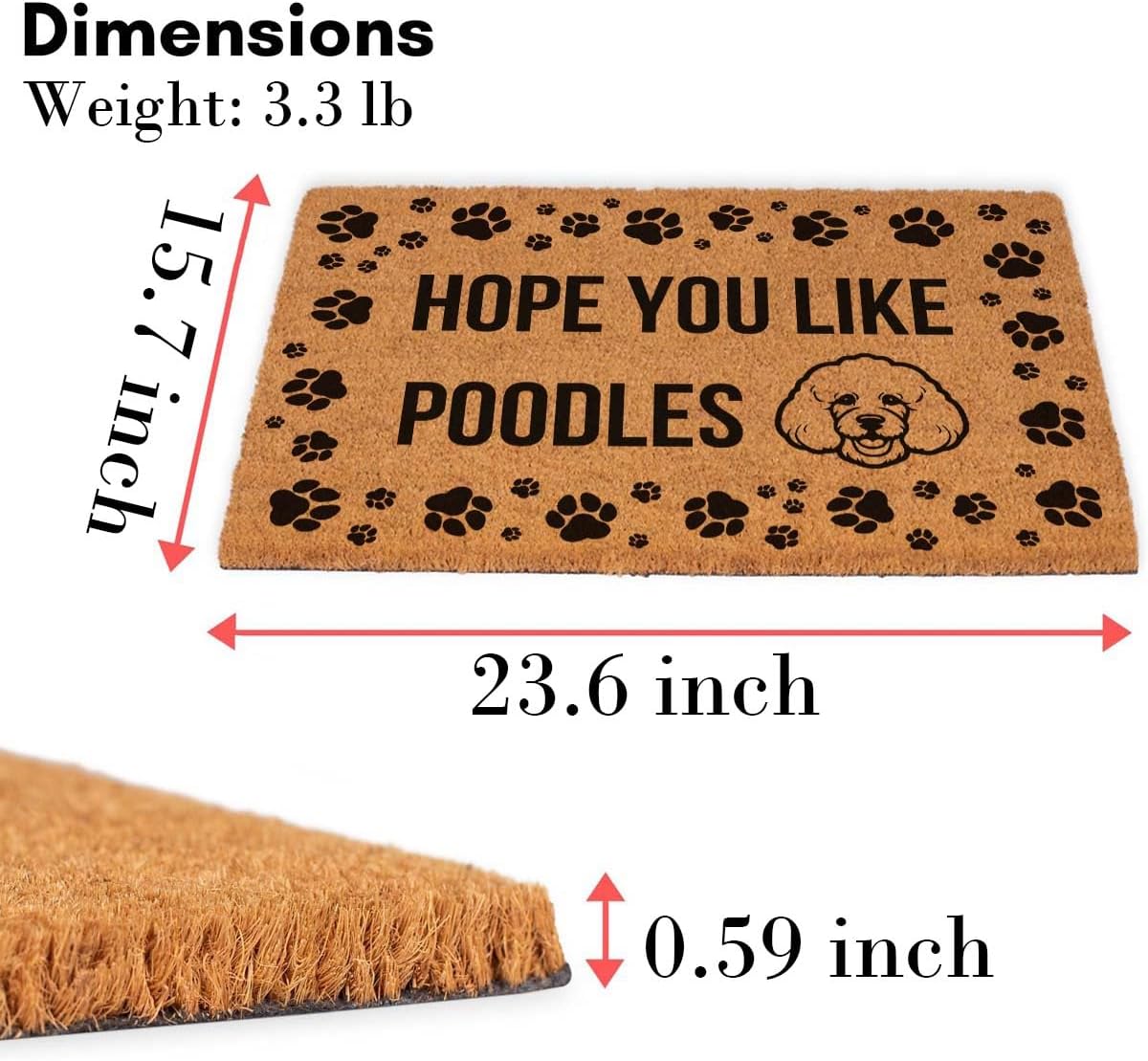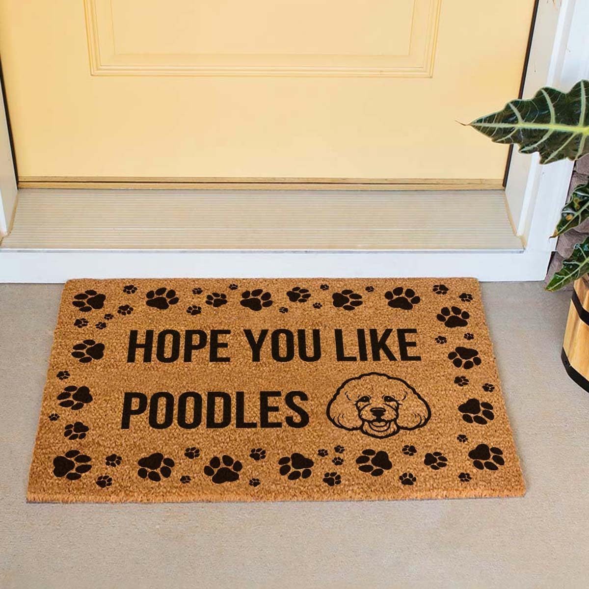 Funny Coir Doormat 23.6 x 15.7 inch Personalized House Warming Gift Mat for Outside Entrance Front Porch Patio Door Non-Slip Decor (Hope You Like Dog Poodles)
