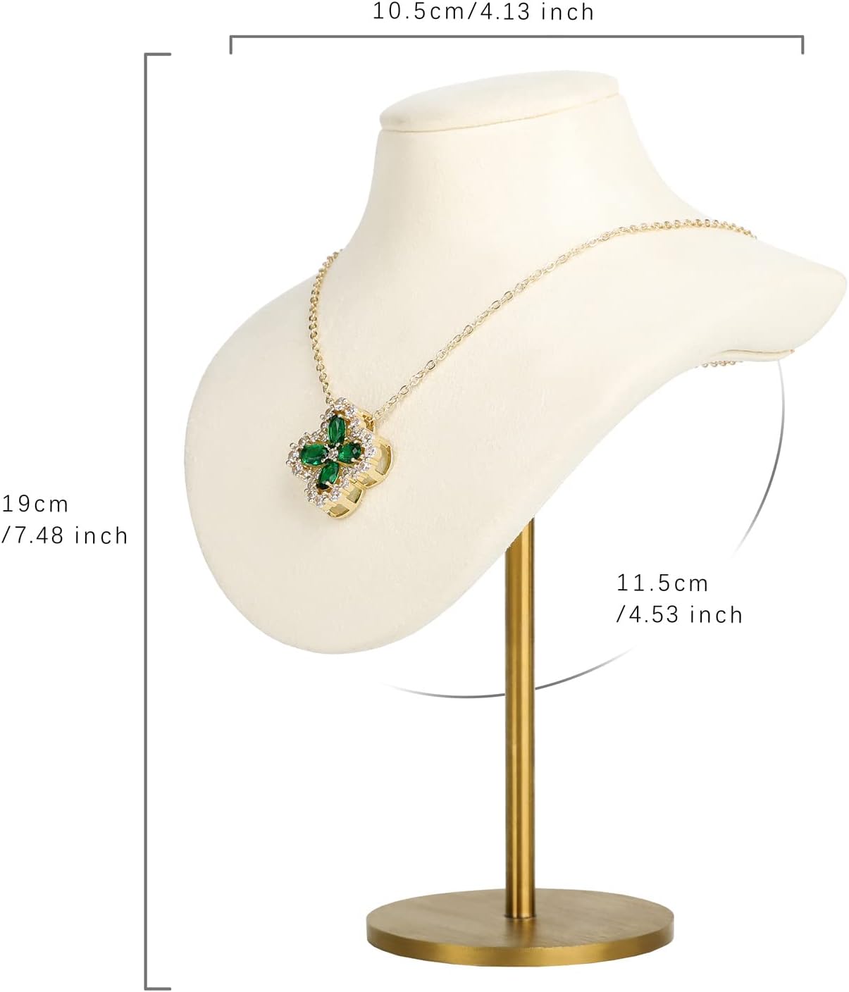 ✔GemeShou necklace holder- beige, display size (21 L x 16 W x 36 H cm )/ (8.3 L x 6.3 W x 14.2 H in ), the height is adustable from 36cm to 57cm. this design is proper for necklace with Thin Chain, there are 2 clips at the velvet back to holder the long chain, please read the dimension image carefully. ✔Click “Add to Cart” now to take a try! ✔All the product shows in pictures are for sell (except jewelries) in our Amazon store, please search "GemeShou" to get more options.