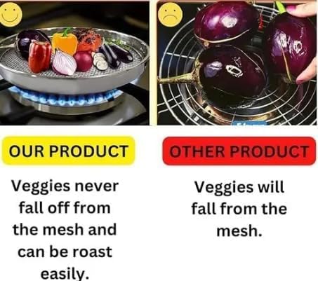 Grill Roaster for Gas Stove, Grill Mesh Tawa Jali for Kitchen Cooking, Roti Basket Pan Roaster Grill, Papad Jali, Mesh Brinjal (Completely Stainless Steel) Material : Non-stick Type : Non-stick Net Quantity (N) : Pack of 1 Length : 24.5 cm Stainless Steel handles are better for cooking because they can withstand high temperatures without melting or degrading, ensuring durability and safety This is a Stainless steel brinjal roaster for gas, roti grill jali for gas stove, bharta jali for gas stove, baigan bharta grill of gas, papad jali for gas stove, papad jali, papad roaster, pulka pan, roti jali. Sizes : Free Size Country of Origin : India