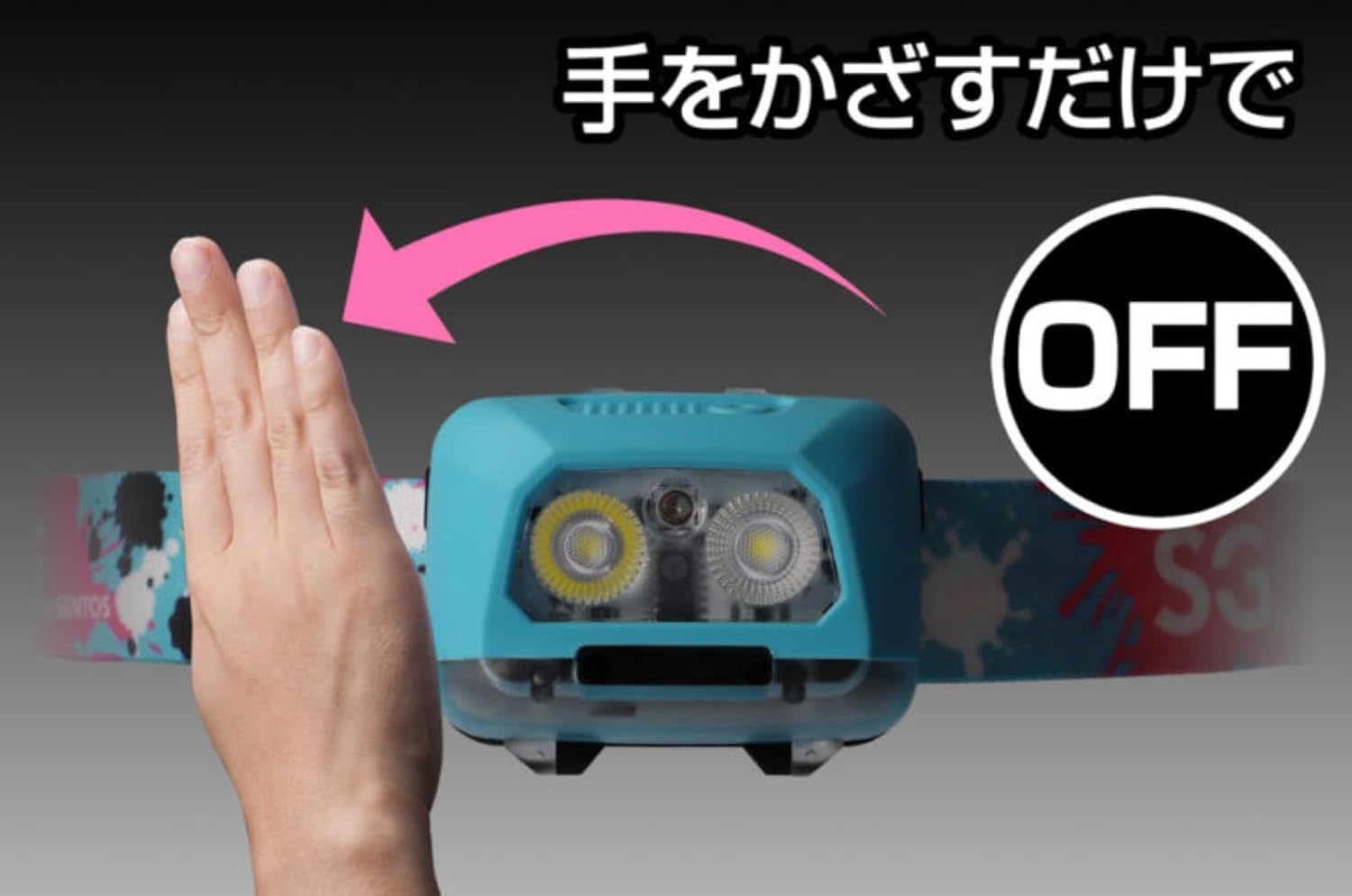 SG by GENTOS Headlight 400 lumens of brightness when fully illuminated. 2 types of irradiation: light collection and diffusion. Equipped with motion sensor switch mode. 【Dimmable】 Press and hold the switch for stepless dimming from low to strong. Motion Sensor: When the sensor switch mode is activated, you can turn it on and off by placing your hand on the sensor part. You can operate the switch without touching the switch, which is convenient for you to operate the switch when your hands are dirty, or when it is difficult to press the switch. Mode Memory Function: Remembers the lighting mode before turning off, and it will light up in the same mode when you turn it on again. Instant Off Switch: After lighting up, press the switch after a certain period of time to turn off the light from any mode with one operation. Red Sub-LED: Useful when the main LED is too bright, such as illuminating your hands in the dark. Battery Indicator: A red light will notify you when you need to replace the battery due to the low battery capacity. 75 degree movable head Head Push Switch