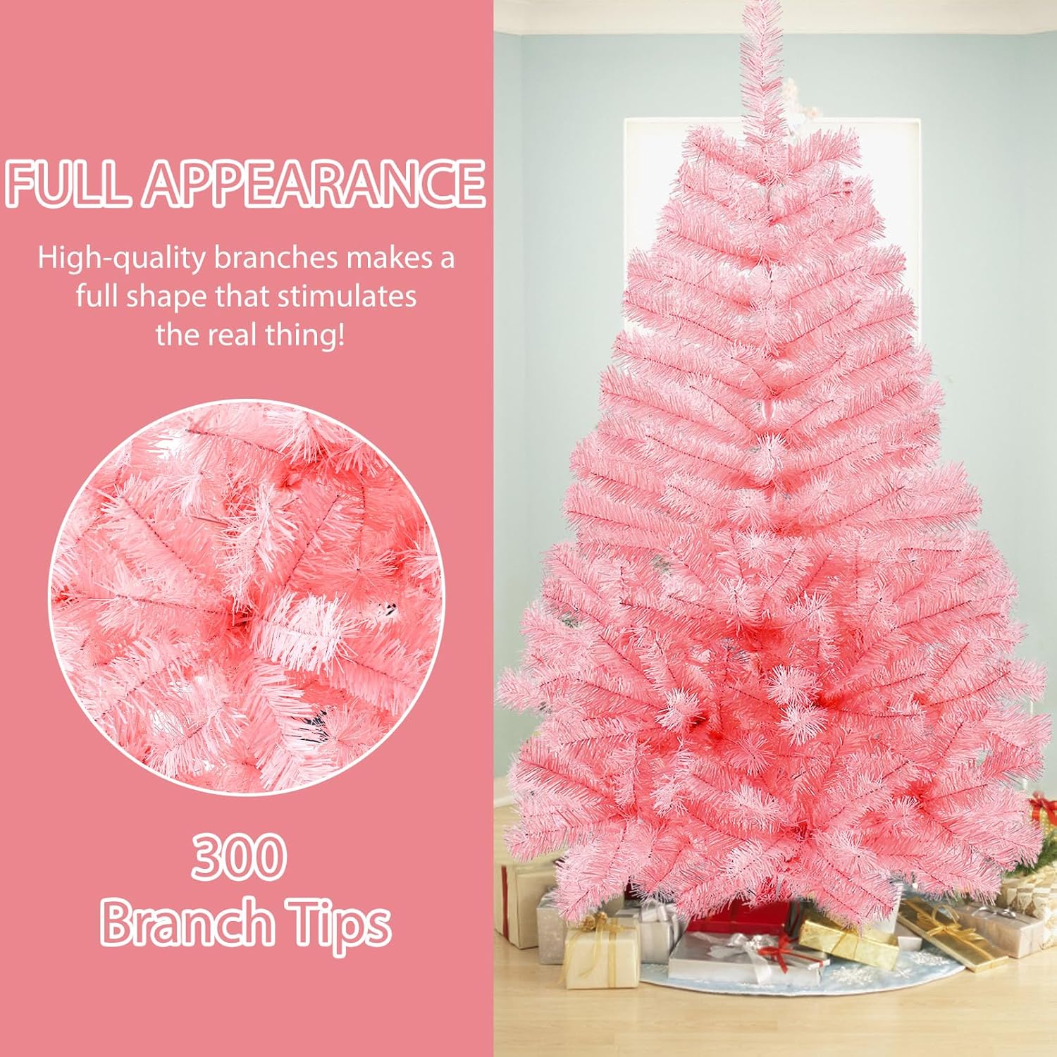 GlyinnHe 6FT Pink Artificial Christmas Tree,Xmas Fake Pine Tree with 700 Branch Tips and Foldable Metal Stand Fully Easy Assembly Hinged Artificial Tree for Home Decoration, Party, Office