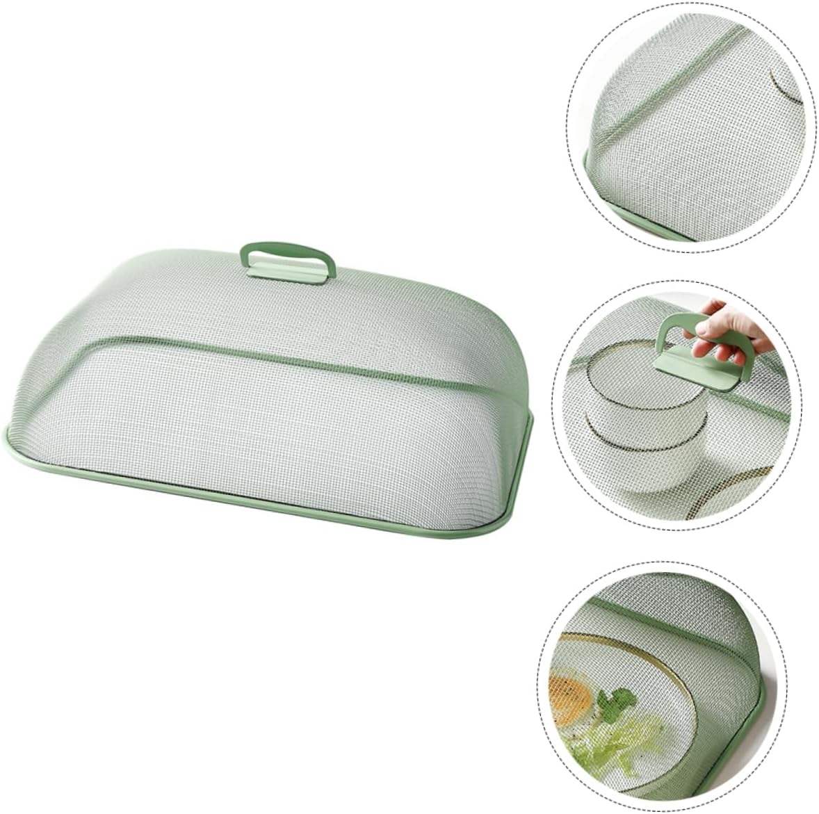 Package Include 1 Features -Material: Iron and Plastic mesh cover -Size: 47.00X34.00X15.00cm/18.47X13.36X5.89in square protectors -Color: Green mesh covers -Product Info: -meal cover - This item boasts strong flexibility, which is resistant to bending and pressure, not easy to deform screen cover. -This cover would your from and , bringing you a healthy eating environment cover tent umbrella . - With mesh wire frame, the effect of and is more significant, and it can also be your home decoration metal mesh cover. - With a plastic handle, it is easy to lift with one finger umbrella screen covers. -Great to place in your kitchen or on the dining table square mesh cover.Goods Descriptionsquare protectors This product uses mesh iron wire, which is and rich in texture.mesh screen cover Encrypted mesh and ultra-fine mesh, even small can be blocked.umbrella screen It has the characteristics of ventilation, and prevention, easy to wash and so on
