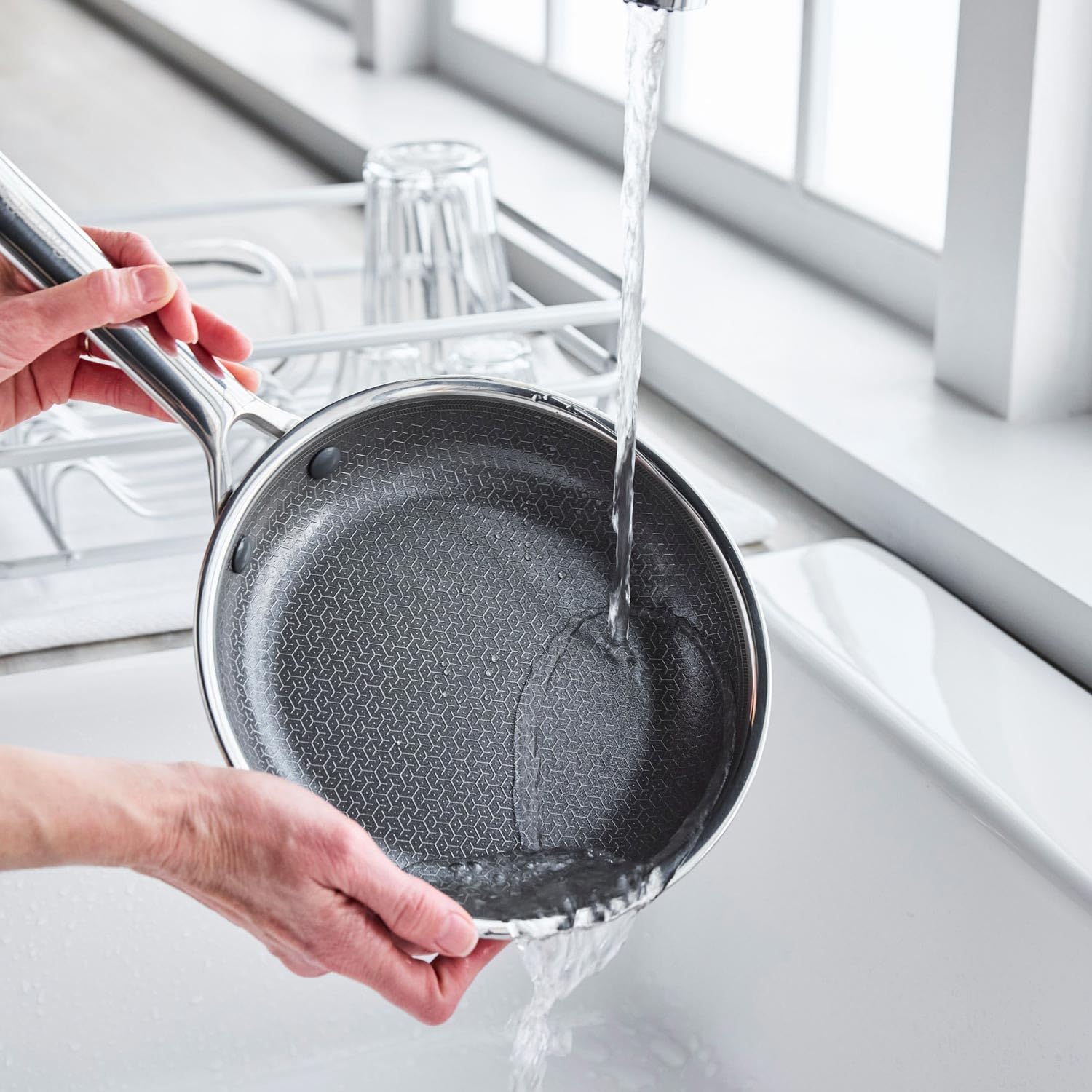 Combining beauty and toughness, Apex has a unique structure with a green pan's unique etched pattern on the stainless steel layer, and a PFAS free ceramic coating. The stainless steel (convex) on the surface gives the food a strong aromatic "baked" and the etched convex is protected by the ceramic layer to prevent wear and maintain its "strength" and non-stick effect. The entire body is made of 3 layers (stainless steel, aluminum, and stainless steel). The aluminum core that transmits heat rapidly is sandwiched in stainless steel, so heat is not only applied to the bottom, but also to the sides, ensuring that the food can pass through to the core of the food even from low to medium heat. The patented ceramic coating of Theron has been further evolved with diamond particles. Clear clear coat layer over the entire surface of pots and pans provides strong scratch resistance. GREENPAN Single handle pot Gas Fire Induction PFAS Free Fluorine free Ceramic Coating Textured pattern Cookware Kitchenware Eco gift Gift