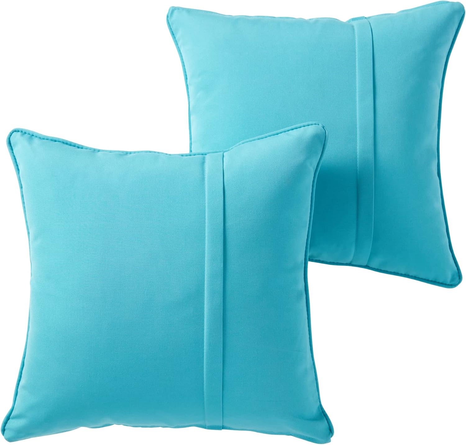 Add a stylish and colorful accent to your outdoor furniture with this set of two 20-inch Sunbrella square outdoor accent pillows by Greendale Home Fashions. Each pillow is overstuffed with a soft polyester fill, made from 100% recycled, post-consumer plastic bottles, for added comfort, strength and durability. It's exterior shell is made from a heavy-duty Sunbrella outdoor acrylic fabric that is fade, water and stain resistant. Pillows feature decorative cording, zipper closure with removable cover and a pleat detail. A variety of colors are available to enhance your outdoor decor. Pillows are filled and finished in the USA.Please Note: Pillow dimensions can be +/- 2 inches. Product will arrive in a slightly compressed state; please allow a few days for product to expand to final size listed in description.In an effort to reduce waste, your cushions will arrive in a recyclable box with no additional plastic waste.