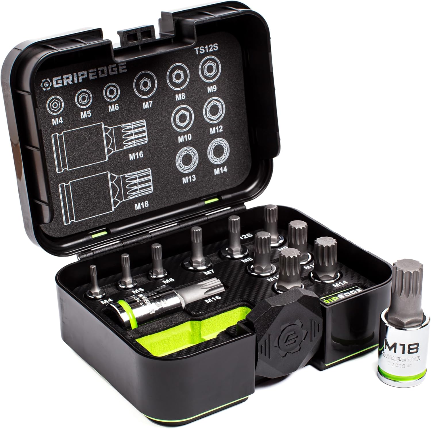 The 12‑Piece RPT 1/4", 3/8", & 1/2" Drive Standard Triple Square Set is a professional‑grade kit designed for removing rounded, damaged, or rusted fasteners with precision. Featuring Reverse Spiral Flute (RPT) technology, each socket securely bites into the fastener as torque is applied, ensuring reliable extraction even under heavy loads.